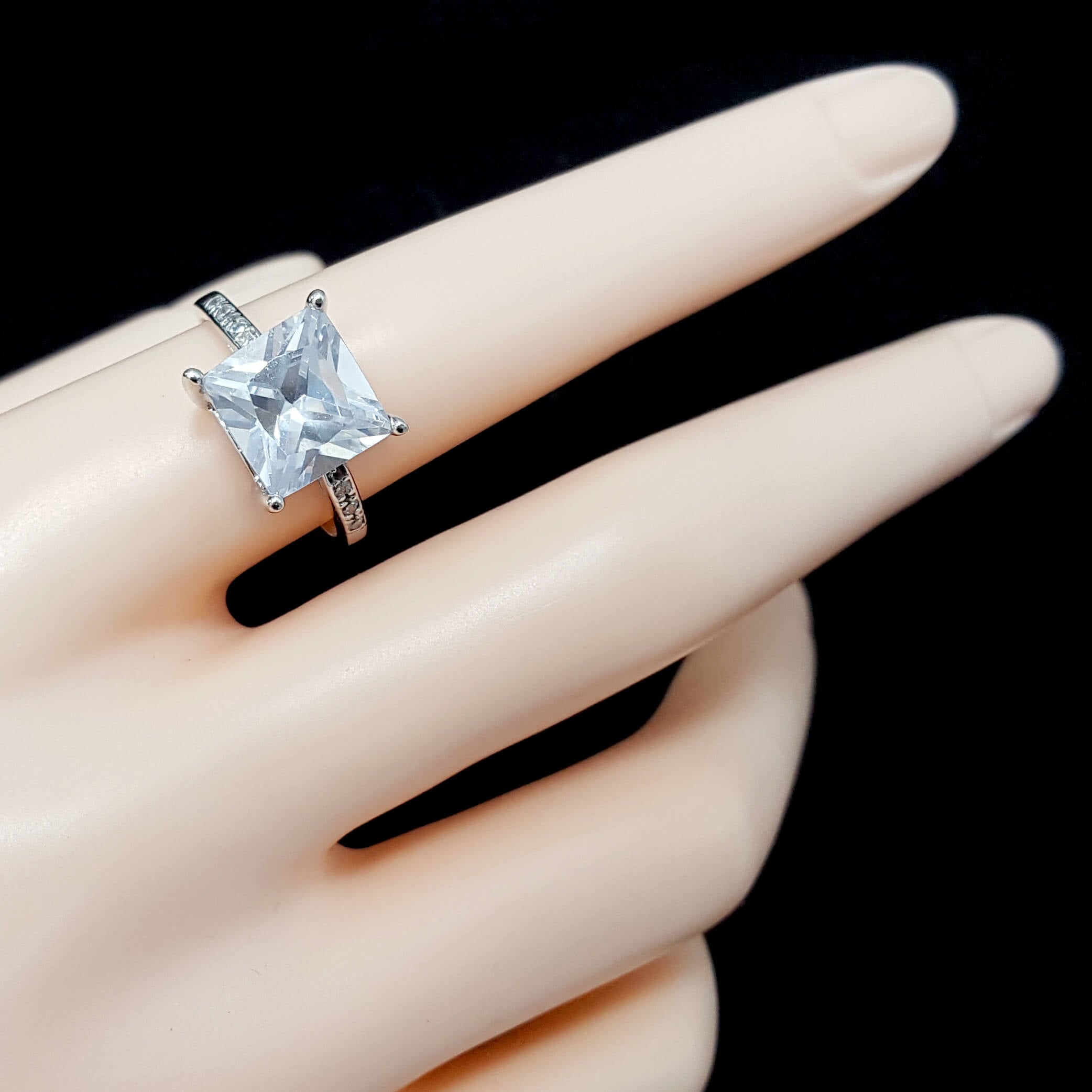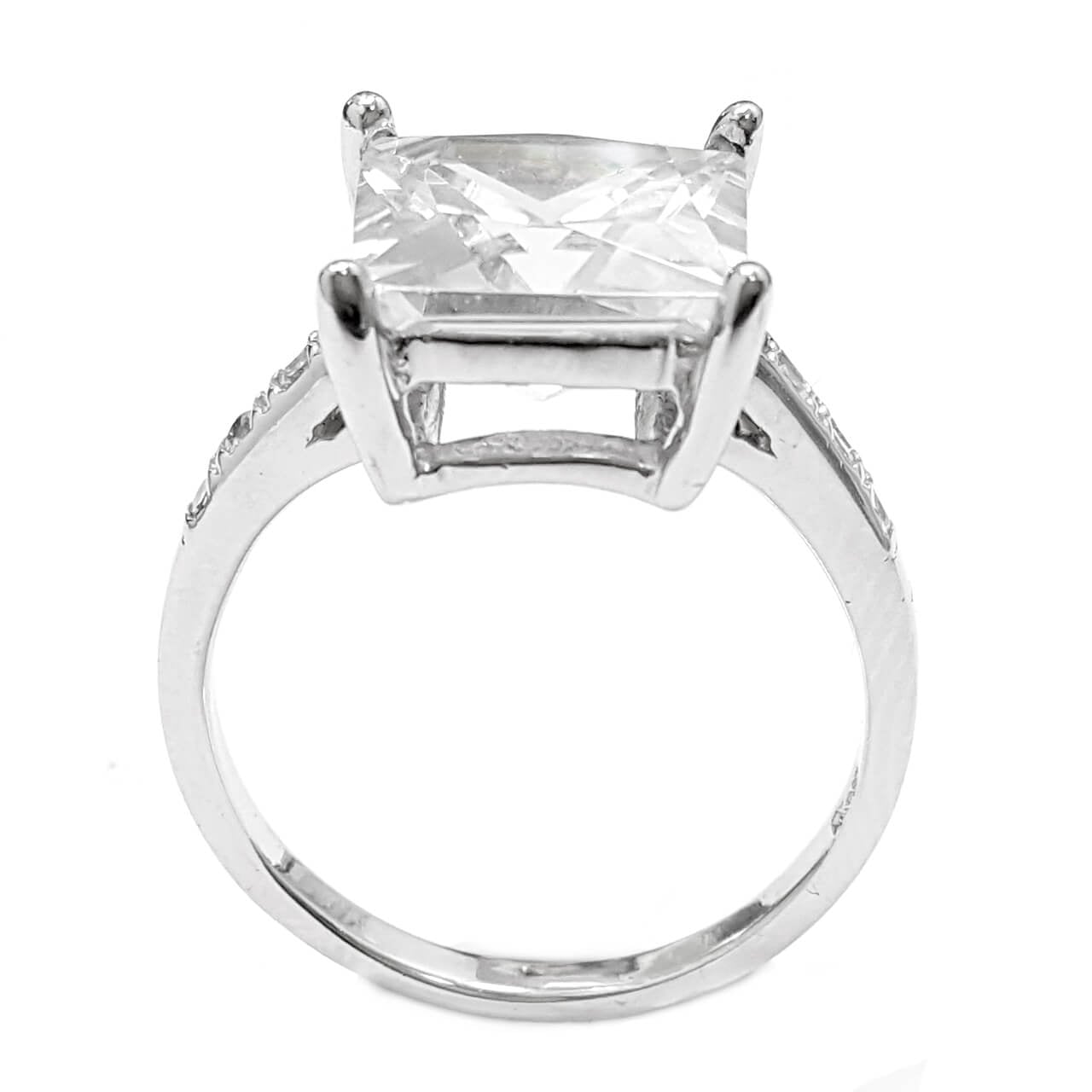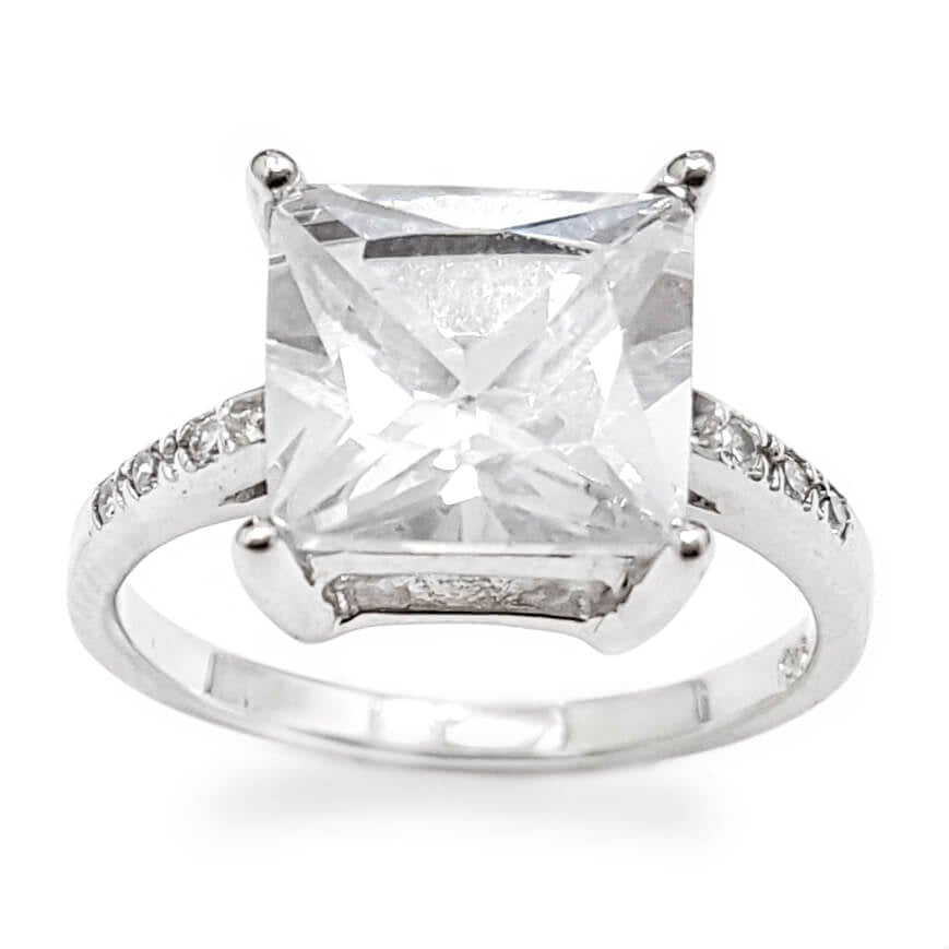 טבעת כסף מעוצבת אבן קריסטל בצורת ריבוע ומשובצת אבני זרקון (WHITE CZ).