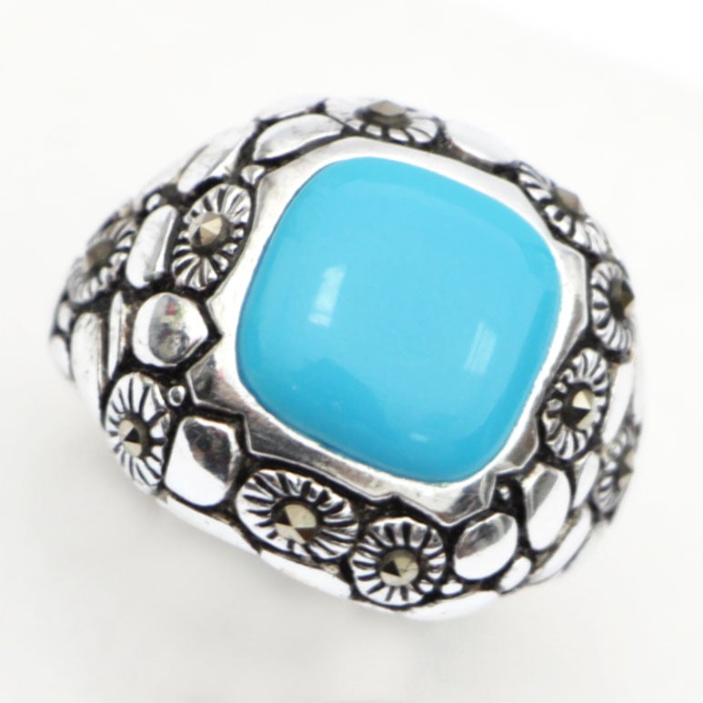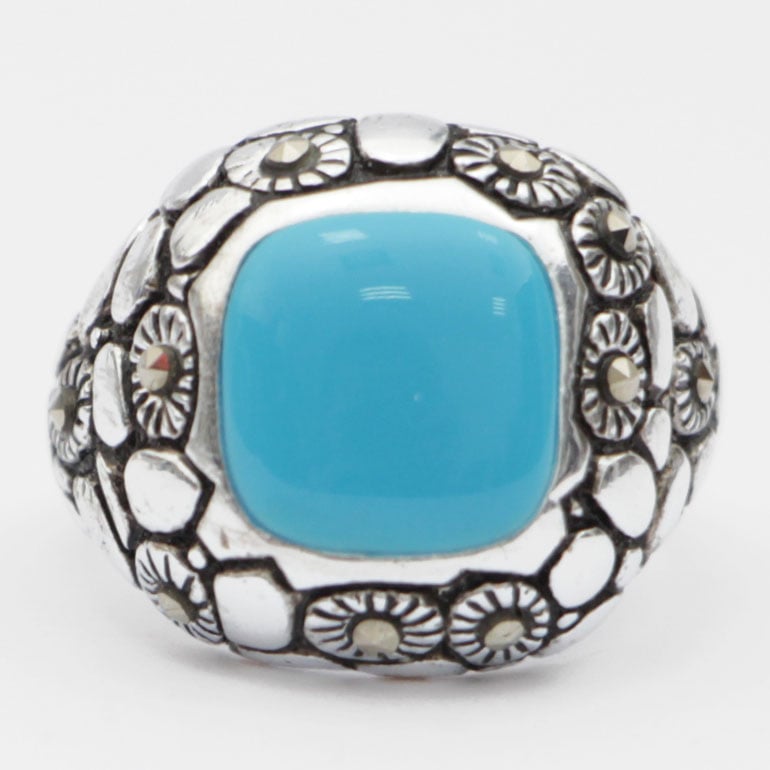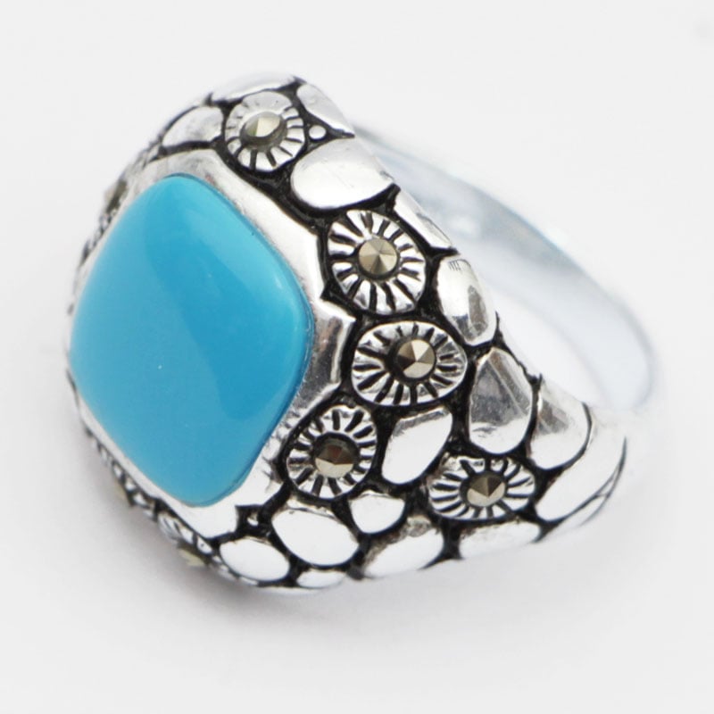 טבעת כסף משובצת אמייל תכלת RG6595