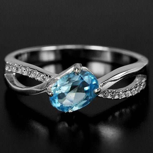 טבעת כסף משובצת טופז כחול ( SWISS BLUE TOPAZ) וזרקונים (WHITE CZ)