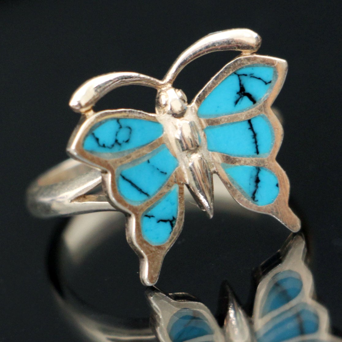 טבעת כסף פרפר משובצת טורקיז כחול (Blue Turquoise).