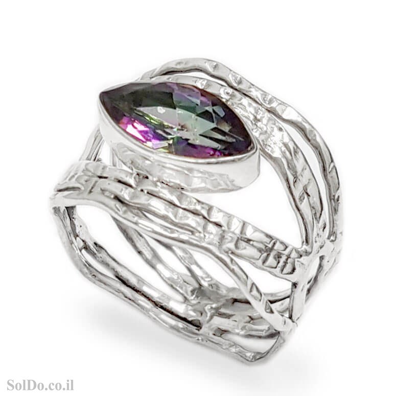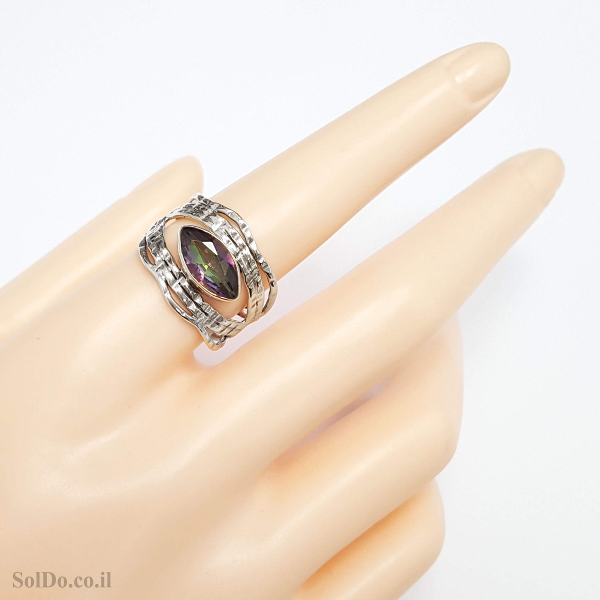 טבעת מכסף מעוצבת משובצת מיסטיק טופז (RAINBOW TOPAZ LAB) .