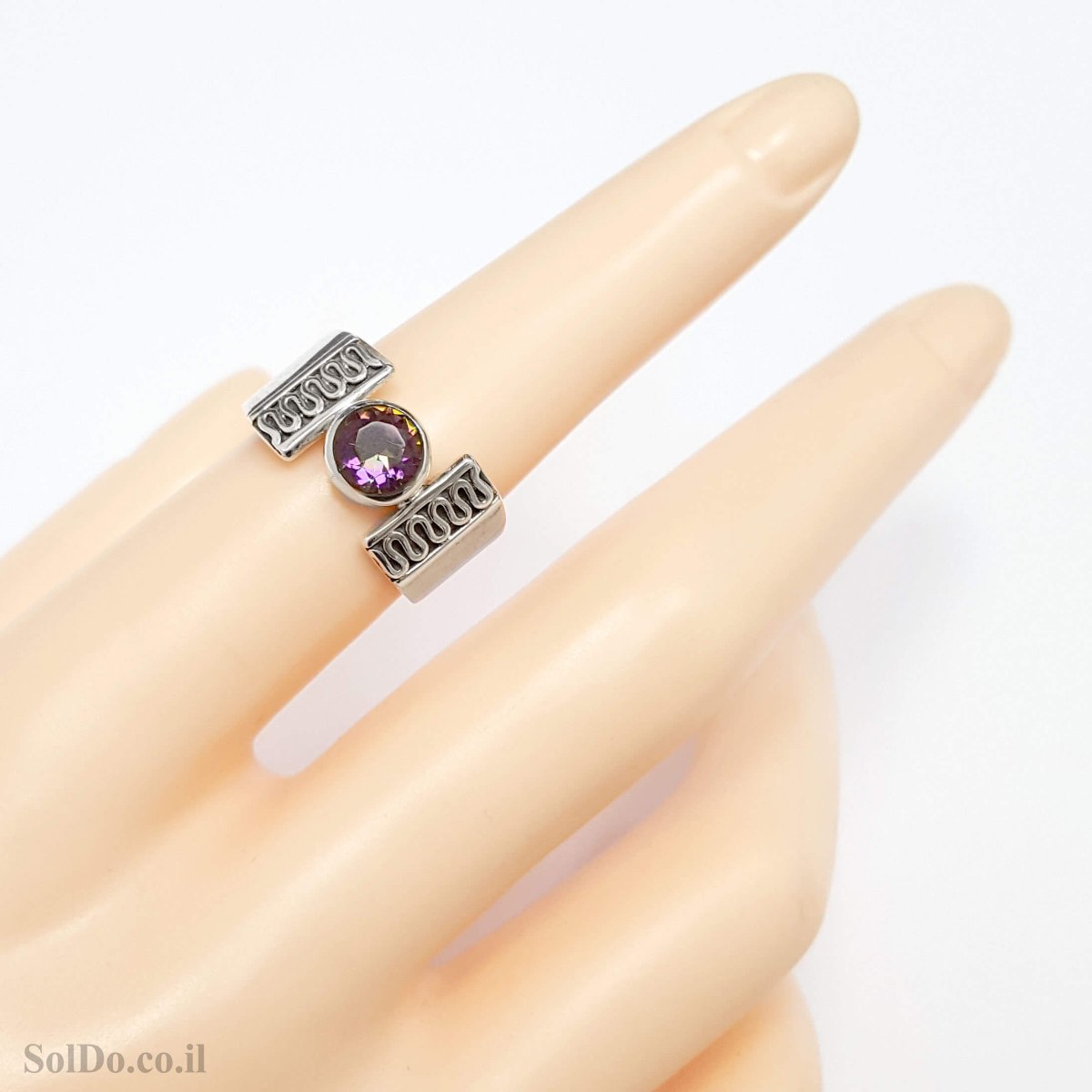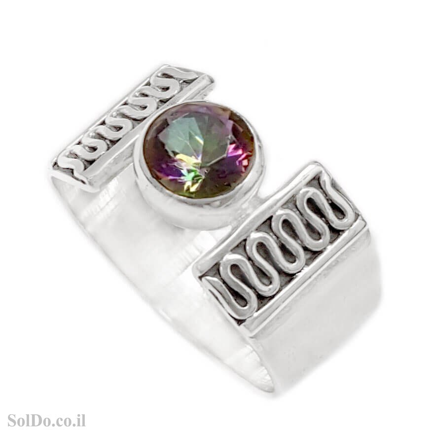 טבעת מכסף מעוצבת משובצת מיסטיק טופז (RAINBOW TOPAZ LAB) .