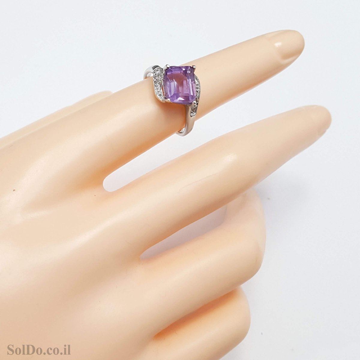 טבעת מכסף משובצת אבן אמטיסט ואבני זרקון (PURPPLE AMETHYST).