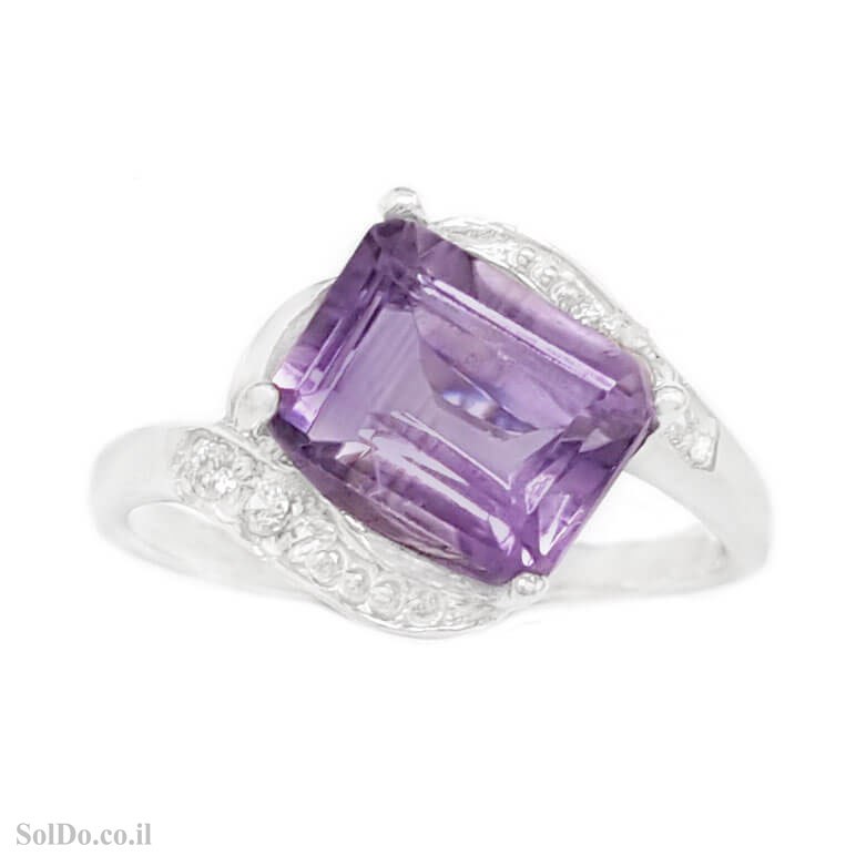 טבעת מכסף משובצת אבן אמטיסט ואבני זרקון RG6303 | תכשיטי כסף 925 | טבעות כסף