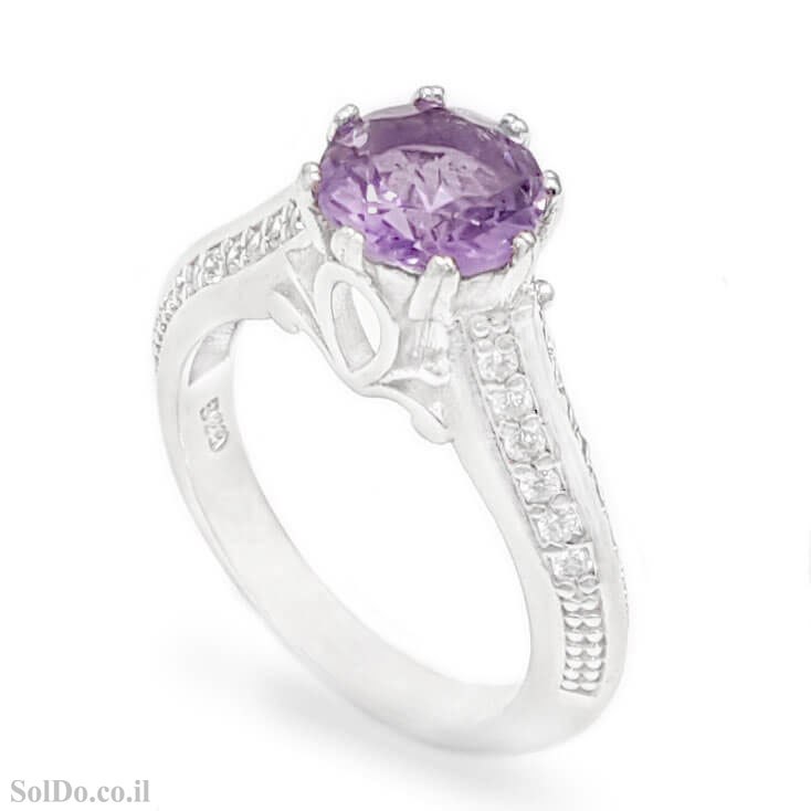טבעת מכסף משובצת אבן אמטיסט ואבני זרקון RG6311 | תכשיטי כסף 925 | טבעות כסף