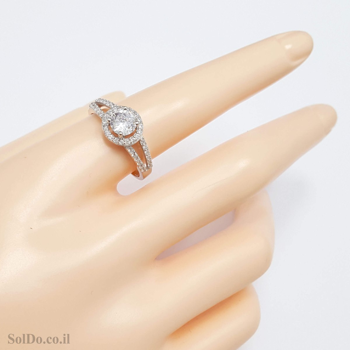 טבעת מכסף משובצת אבן זרקו מרכזית ואבני זרקון קטנות (WHITE CZ)