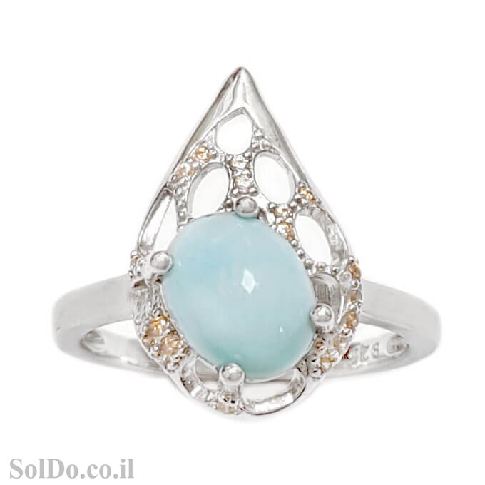 טבעת מכסף משובצת אבן לרימר ( LARIMAR) וזרקונים (YELLOW CZ)