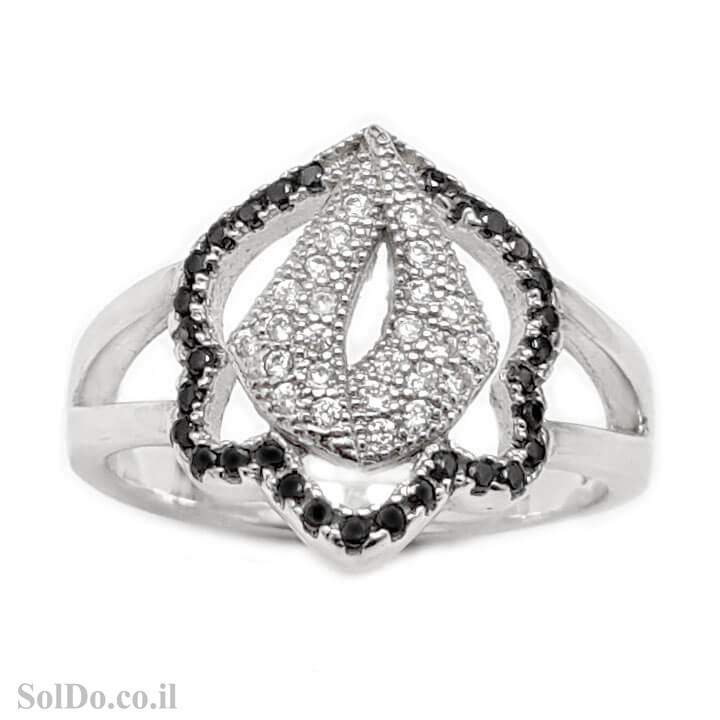 טבעת מכסף משובצת אבני זרקון שחורות ולבנות (WHITE, BLACK CZ).