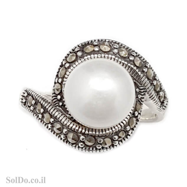 טבעת מכסף משובצת פנינה לבנה ומרקזטים RG8897
