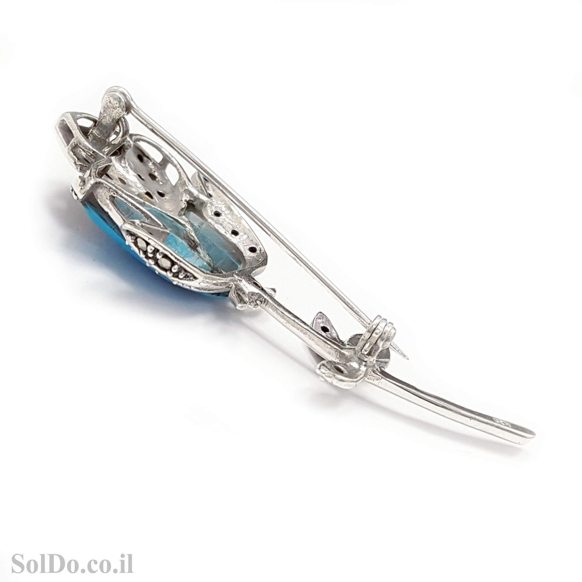 סיכה מכסף מעוצבת בצורת ורד משובצת מרקזטים וטורקיז T6199 | תכשיטי כסף