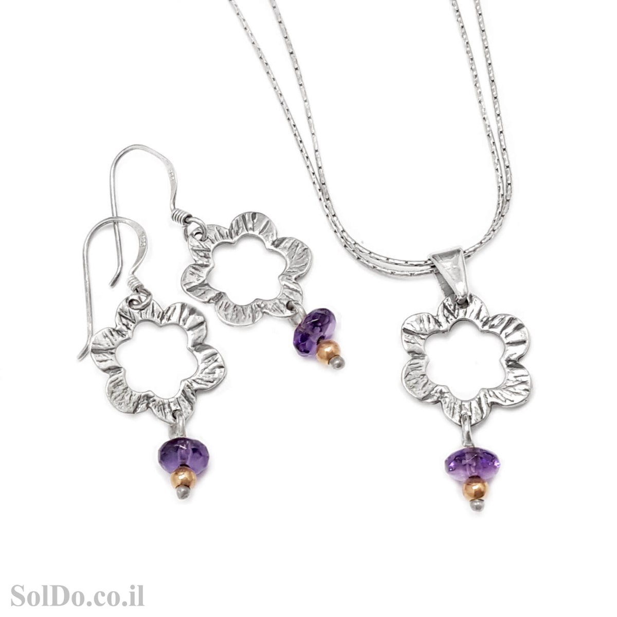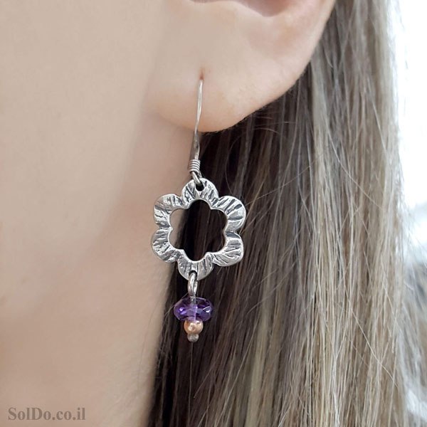 עגילים ותליון מכסף מעוצבים משובצים אבני אמטיסט S1730