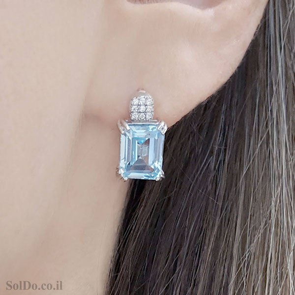 עגילים תלויים ותליון מכסף משובצים אבני טופז כחולה וזרקונים (SKY BLUE TOPAZ, WHITE CZ).