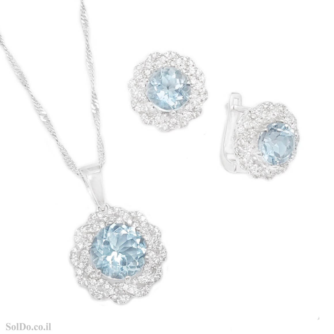 עגילים ותליון מכסף משובצים אבני טופז כחולה ואבני זרקון S1743