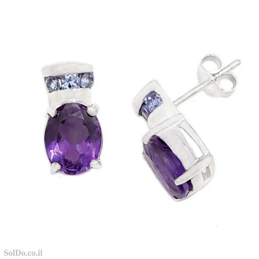 עגילים מכסף משובצים אבני אמטיסט סגול ואבני טנזנית A9007 | תכשיטי כסף