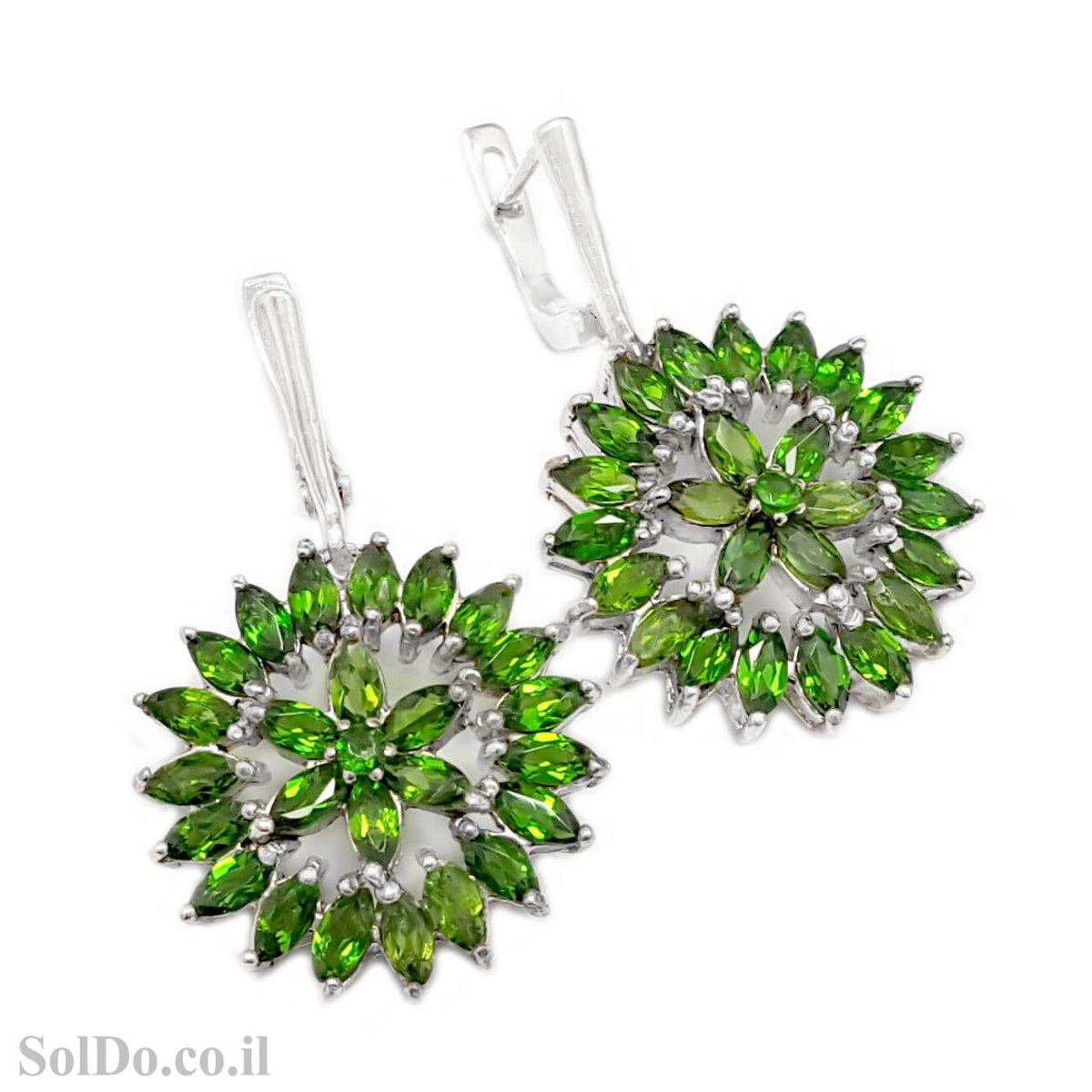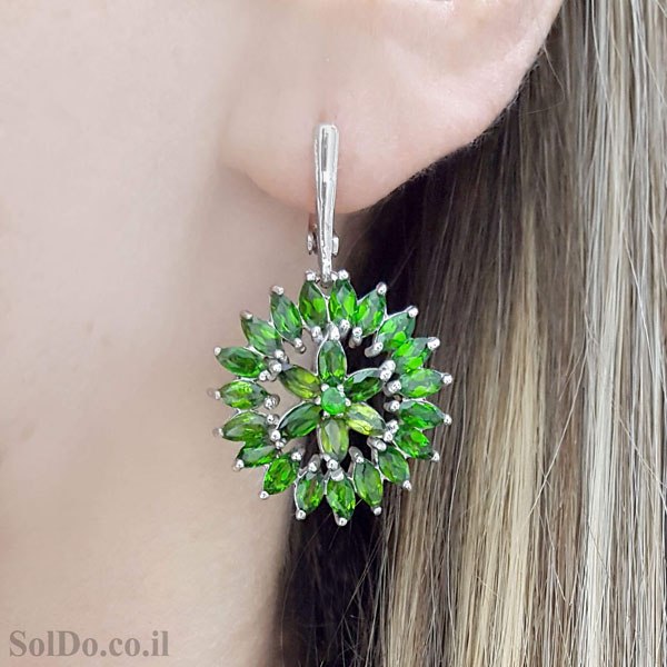 עגילים מכסף משובצים אבני כרום דואופסיד A8980 | תכשיטי כסף 925 | עגילי כסף