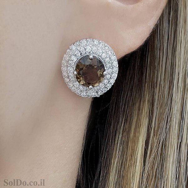 עגילים מכסף משובצים אבני סמוקי טופז ואבני זרקון ( SMOCKY TOPAZ)