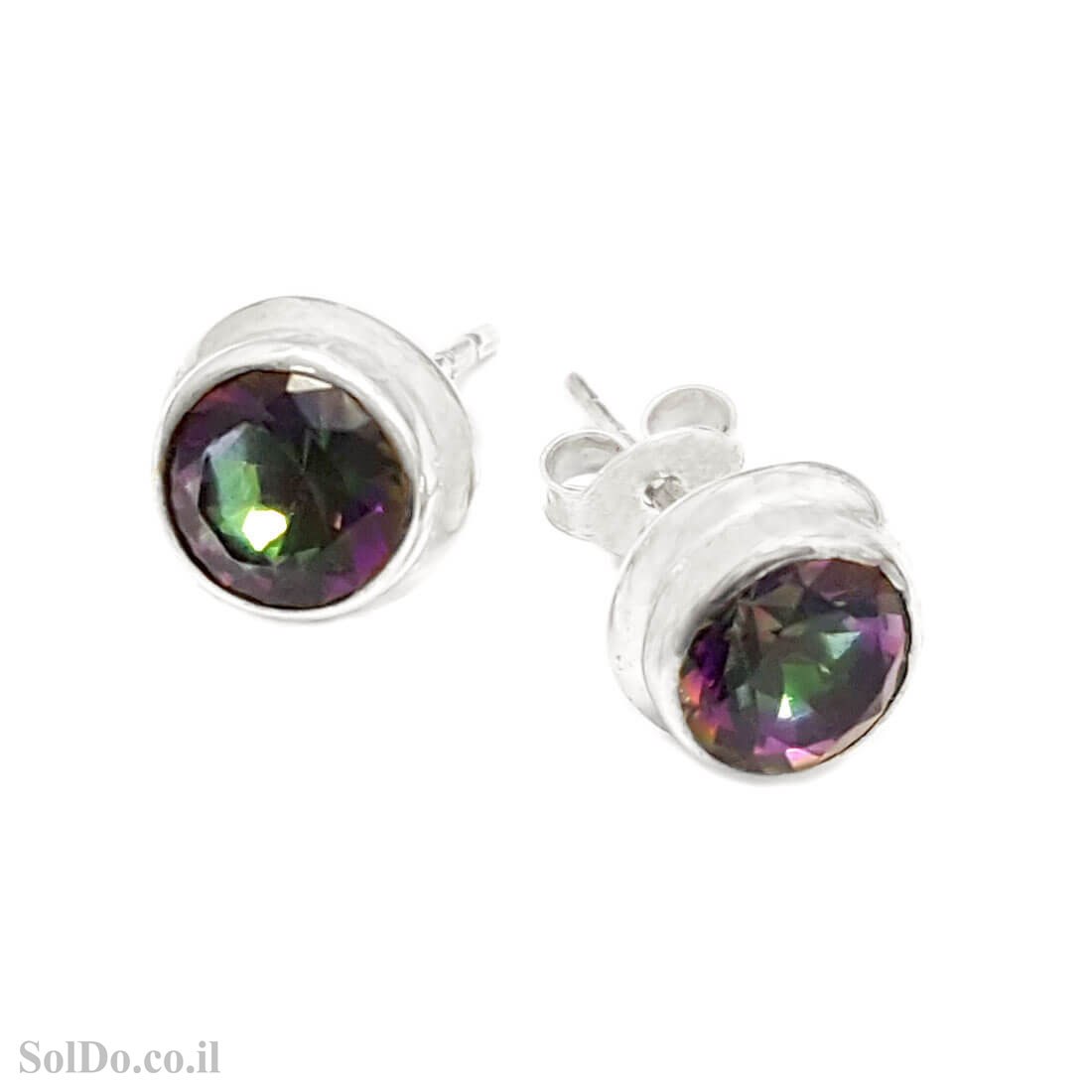 עגילים מכסף צמודים משובצים מיסטיק טופז (RAINBOW TOPAZ LAB).