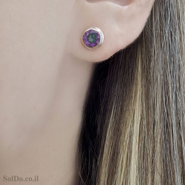 עגילים מכסף צמודים משובצים מיסטיק טופז A8995 | תכשיטי כסף | עגילי כסף