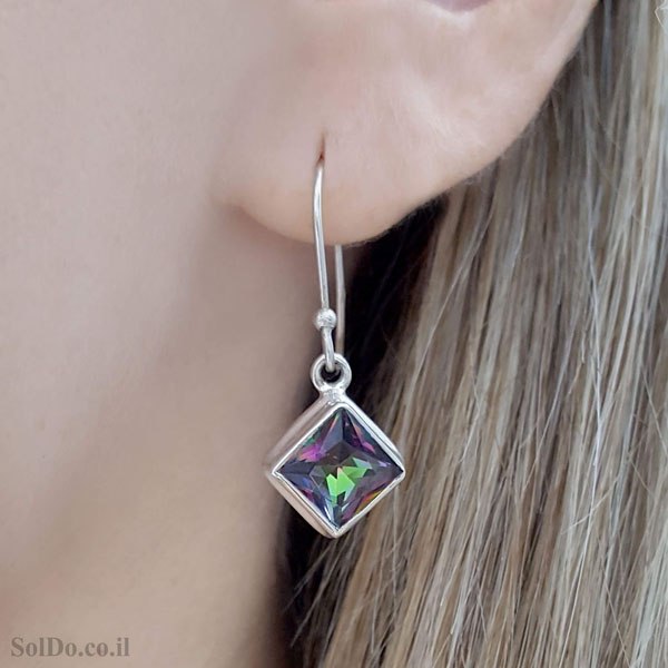 עגילים מכסף תלויים משובצים מיסטיק טופז (RAINBOW TOPAZ LAB).