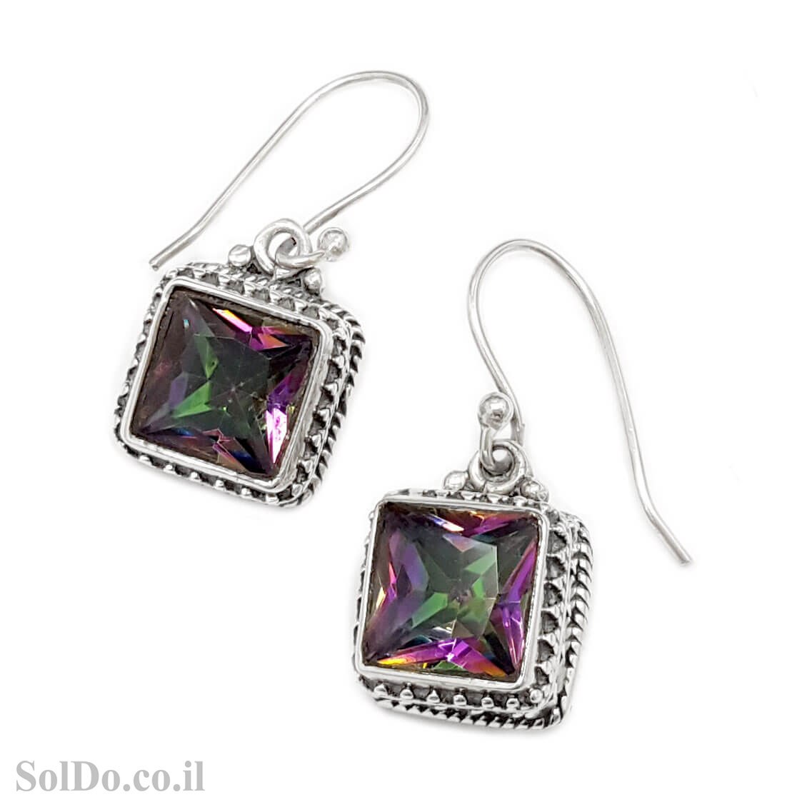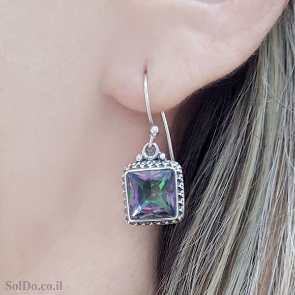 עגילים מכסף תלויים משובצים מיסטיק טופז A8998 | תכשיטי כסף | עגילי כסף