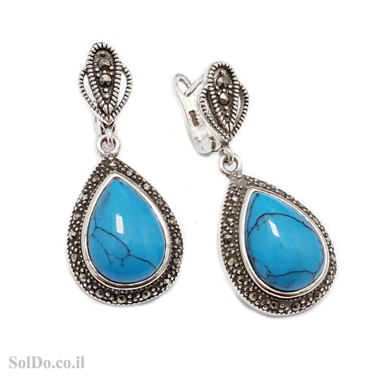 עגילים מכסף תלויים משובצים מרקזטים ואבני טורקיז A8985 | תכשיטי כסף 925 | עגילי כסף