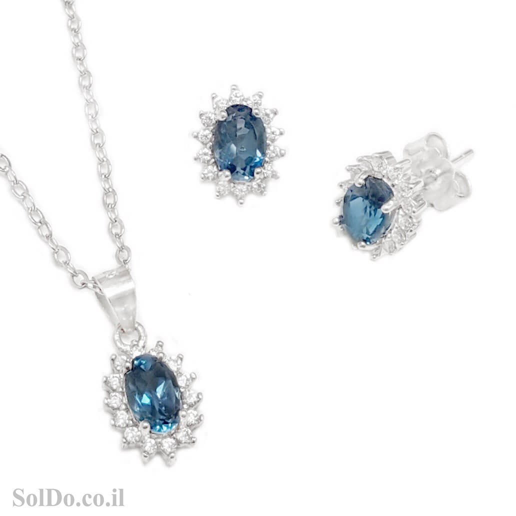 עגילים צמודים ותליון מכסף משובצים אבני טופז כחולה ואבני זרקון S1745