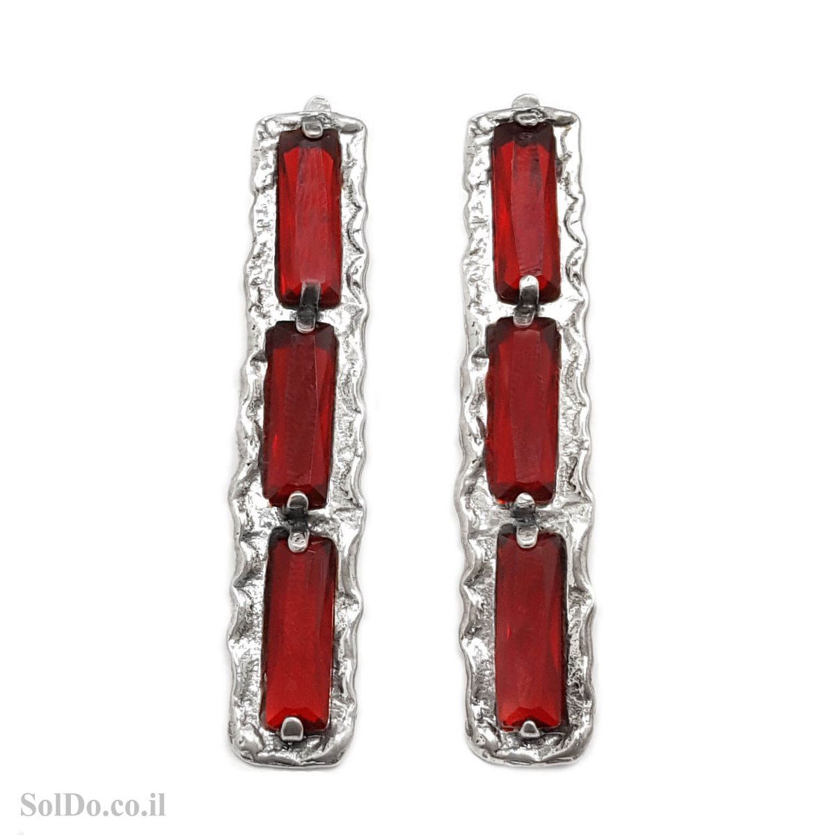 עגילי כסף מעוצבים ארוכים בשילוב אבני זרקון צבע אדום A8925 | תכשיטי כסף 925