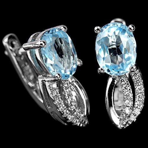 עגילי כסף משובצים טופז כחול ( SKY BLUE TOPAZ) וזרקונים (WHITE CZ).
