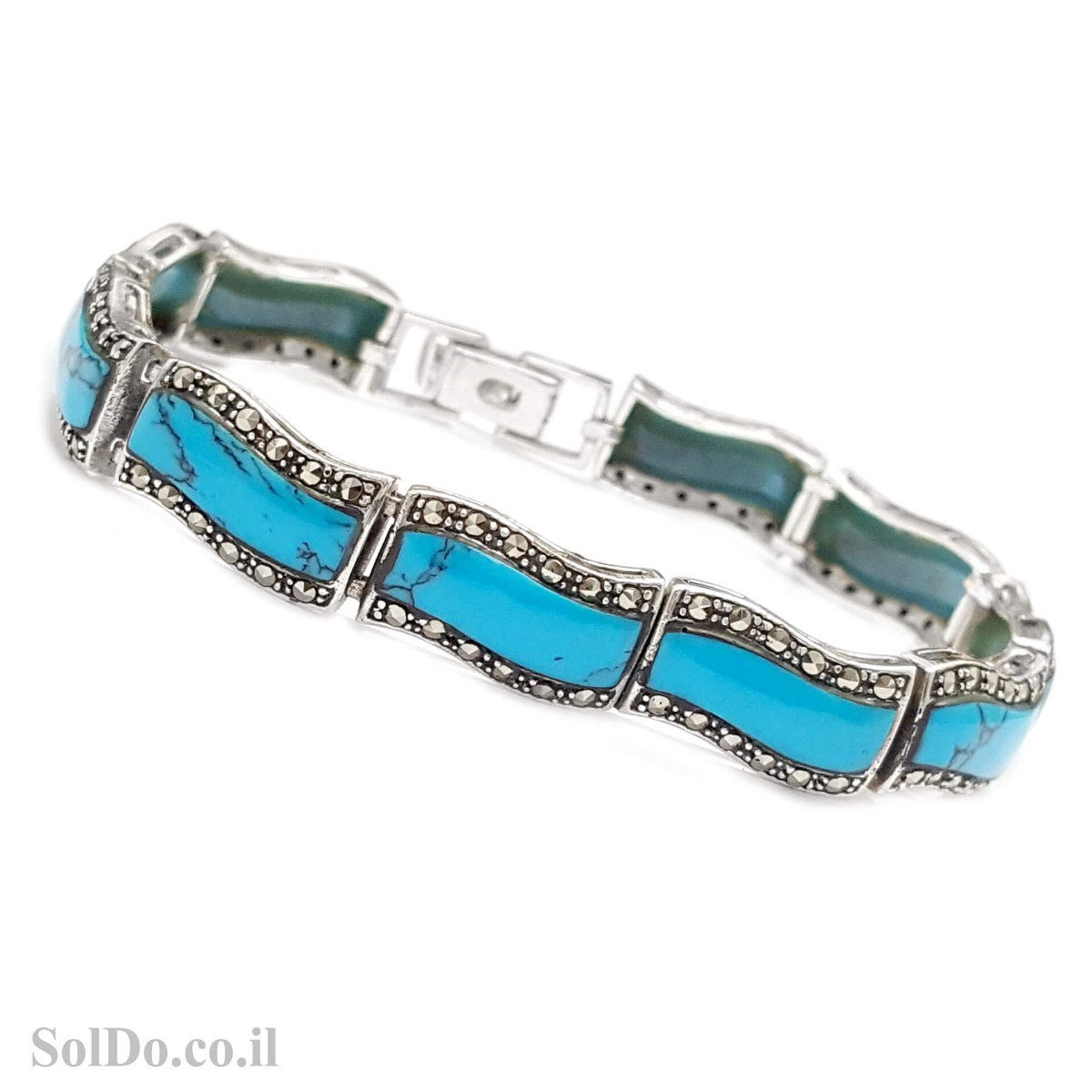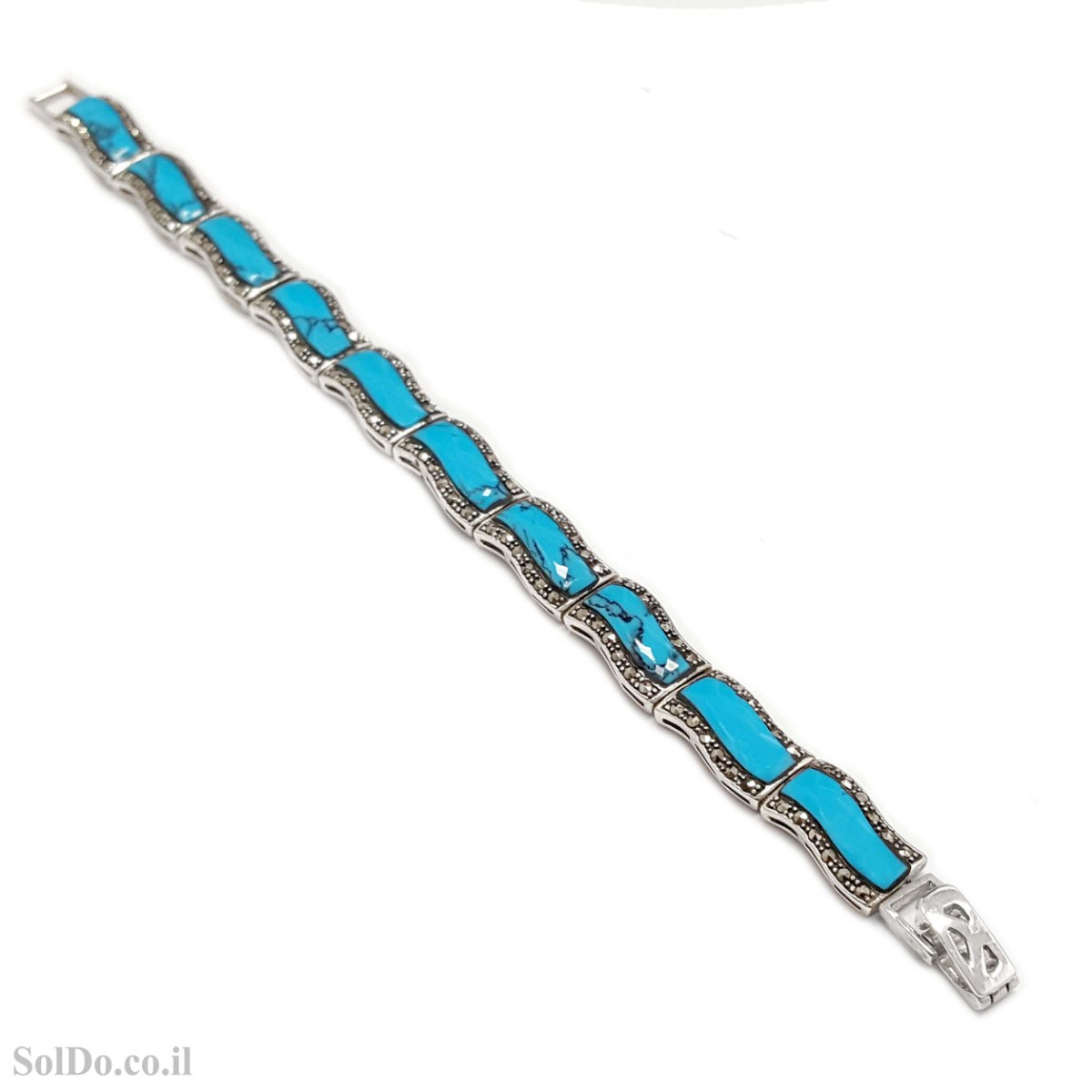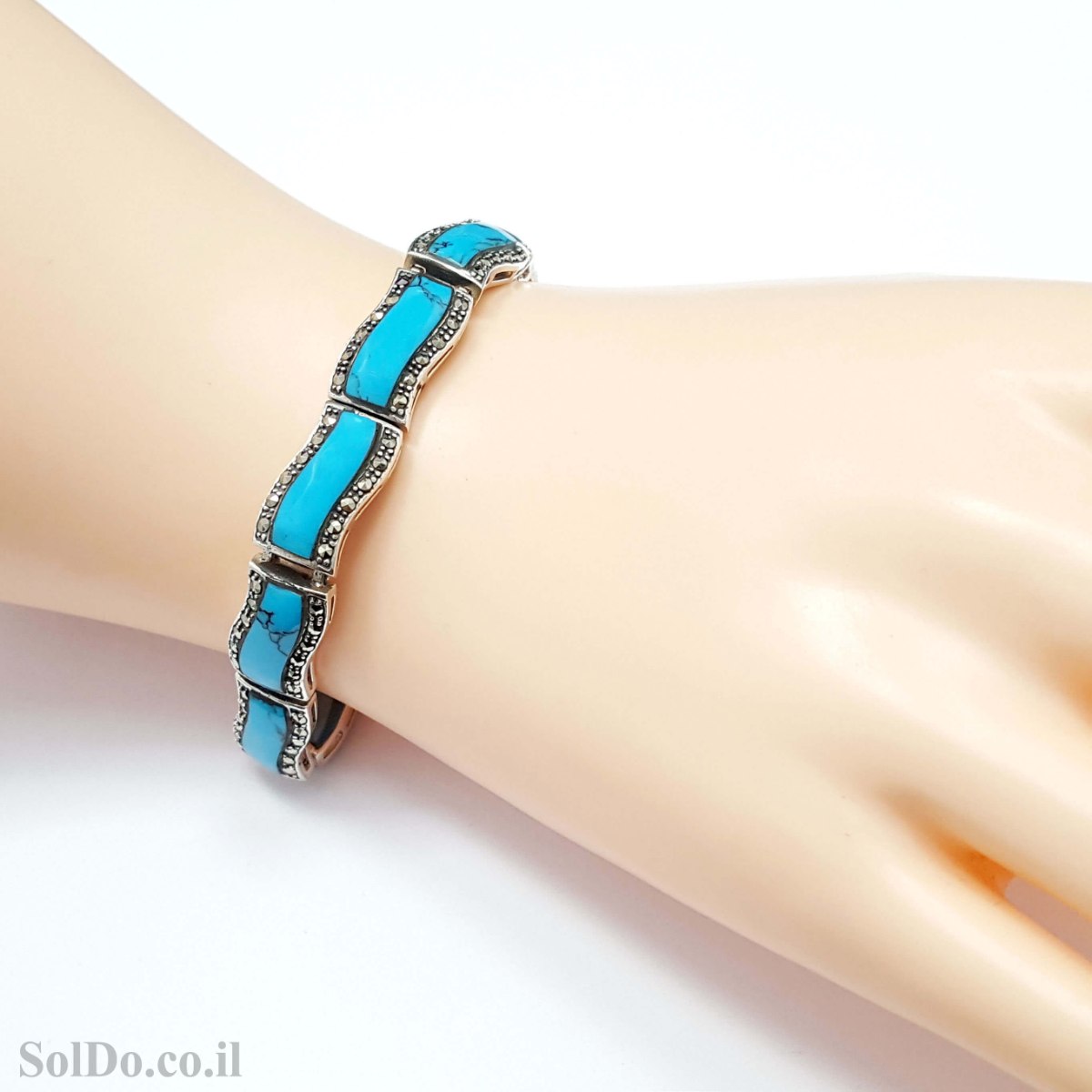 צמיד מכסף לאישה משובץ מרקזטים וטורקיז Z3166 | תכשיטי כסף 925 | צמידי כסף