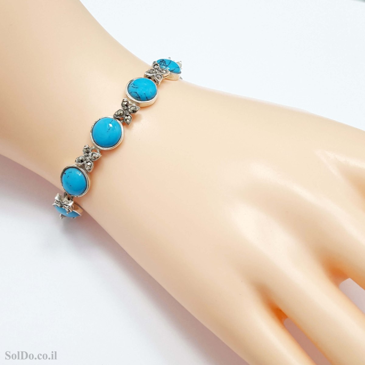 צמיד מכסף לאישה משובץ מרקזטים וטורקיז Z3167 | תכשיטי כסף 925 | צמידי כסף