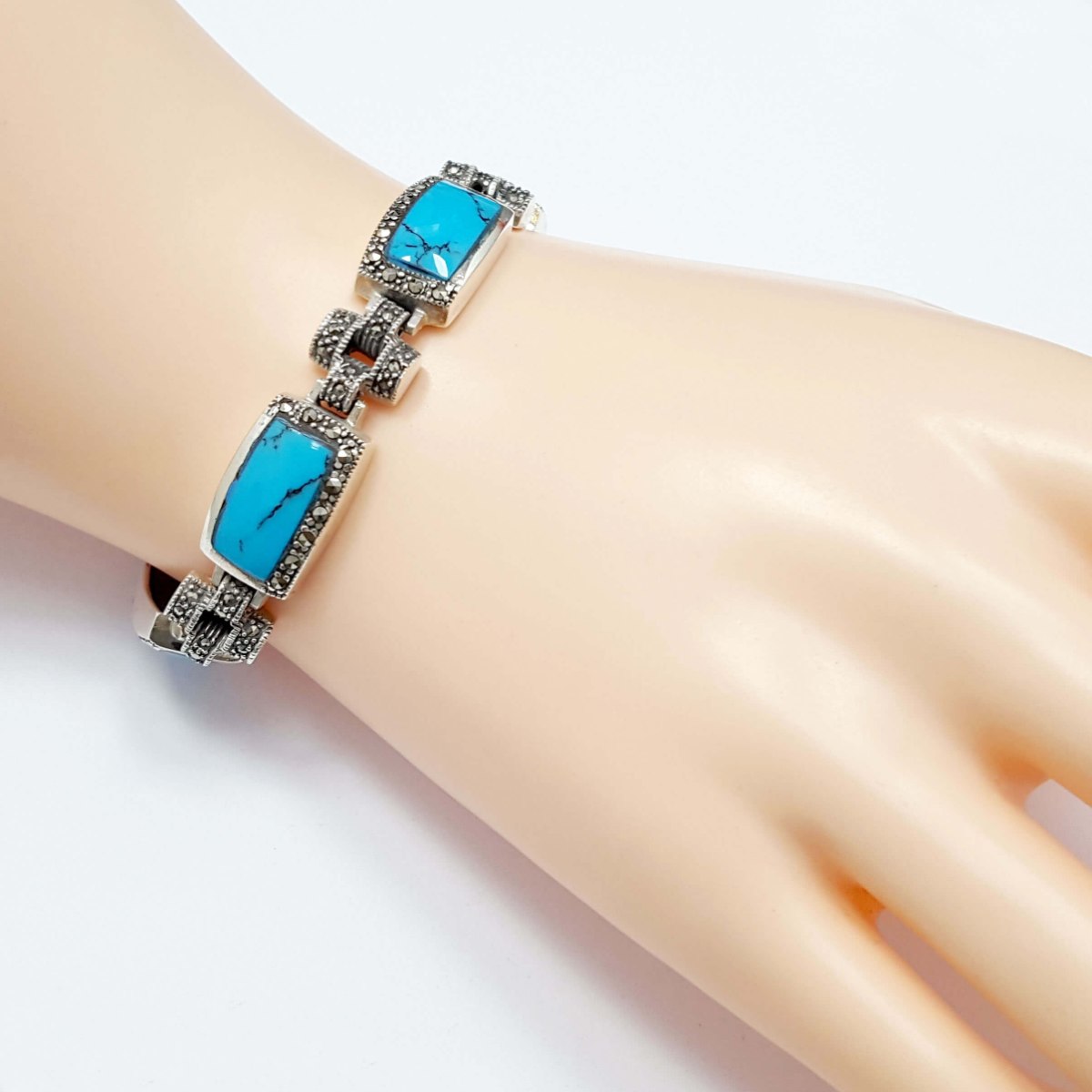 צמיד מכסף לאישה משובץ מרקזטים וטורקיז (Marcasite, TURQUISE).