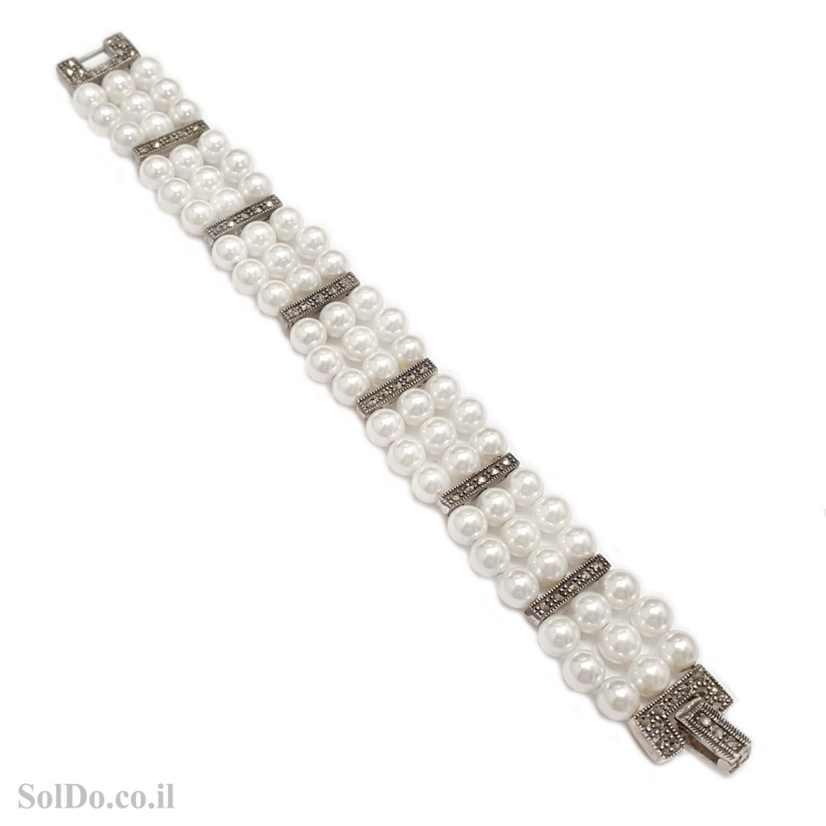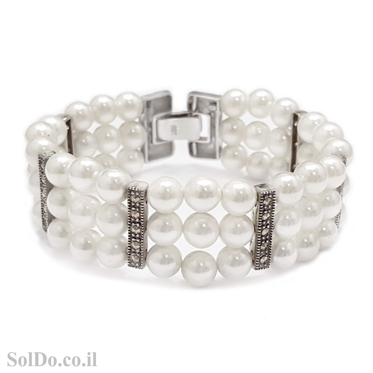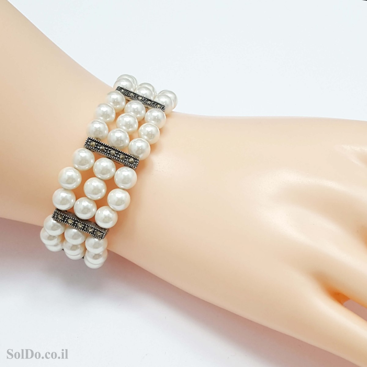 צמיד מכסף מעוצב פנינים משובץ מרקזטים ( PEARL, MARCASITE)