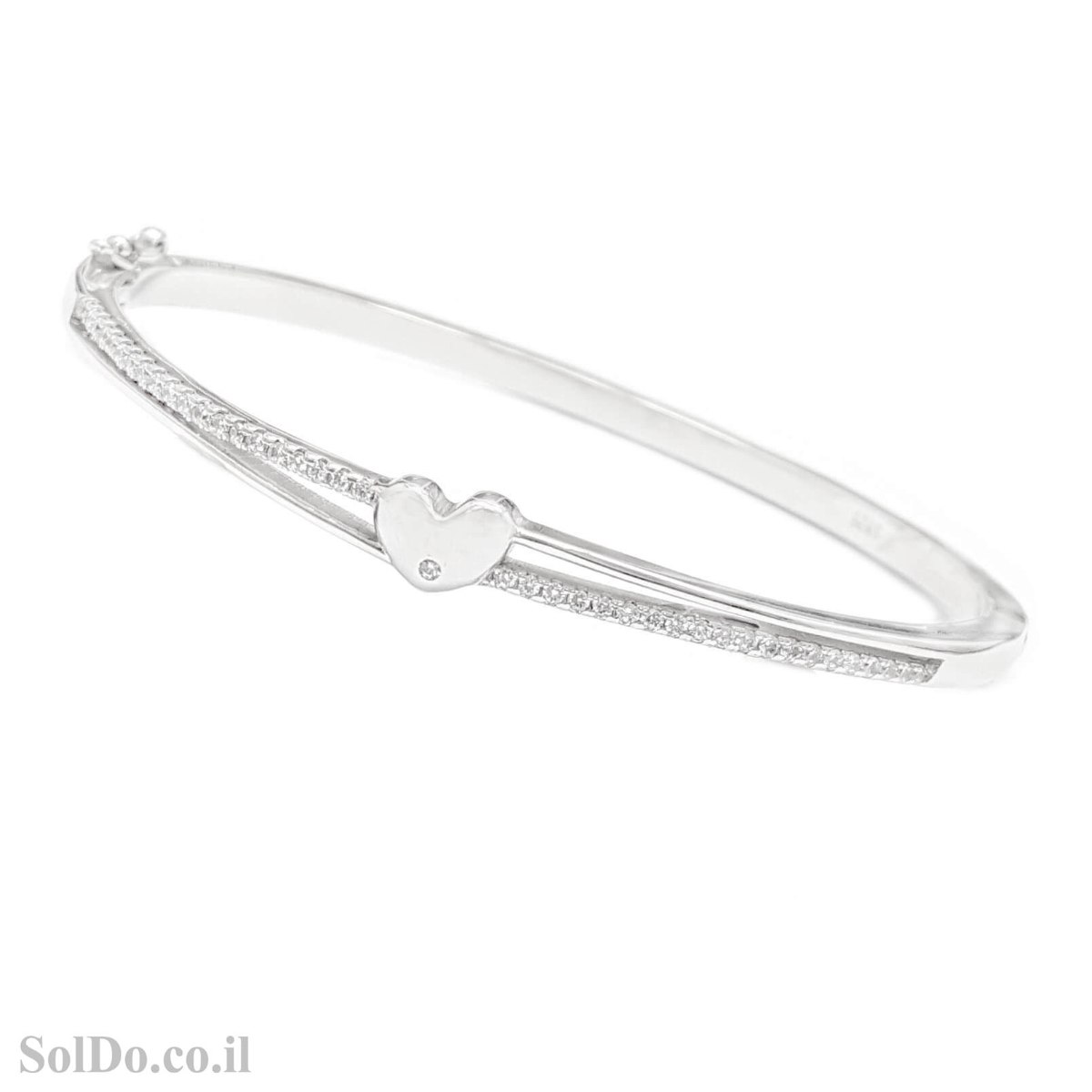 צמיד קשיח מכסף משובץ אבני זרקון מעוצב לב קטן ( WHITE CZ).