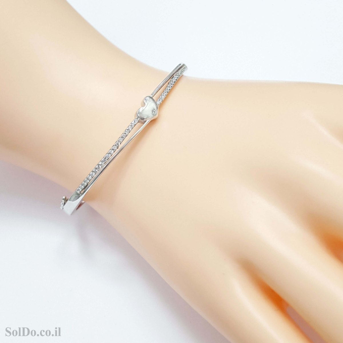 צמיד קשיח מכסף משובץ אבני זרקון מעוצב לב קטן Z3172 | תכשיטי כסף 925 | צמידי כסף