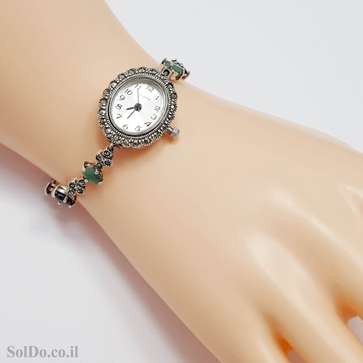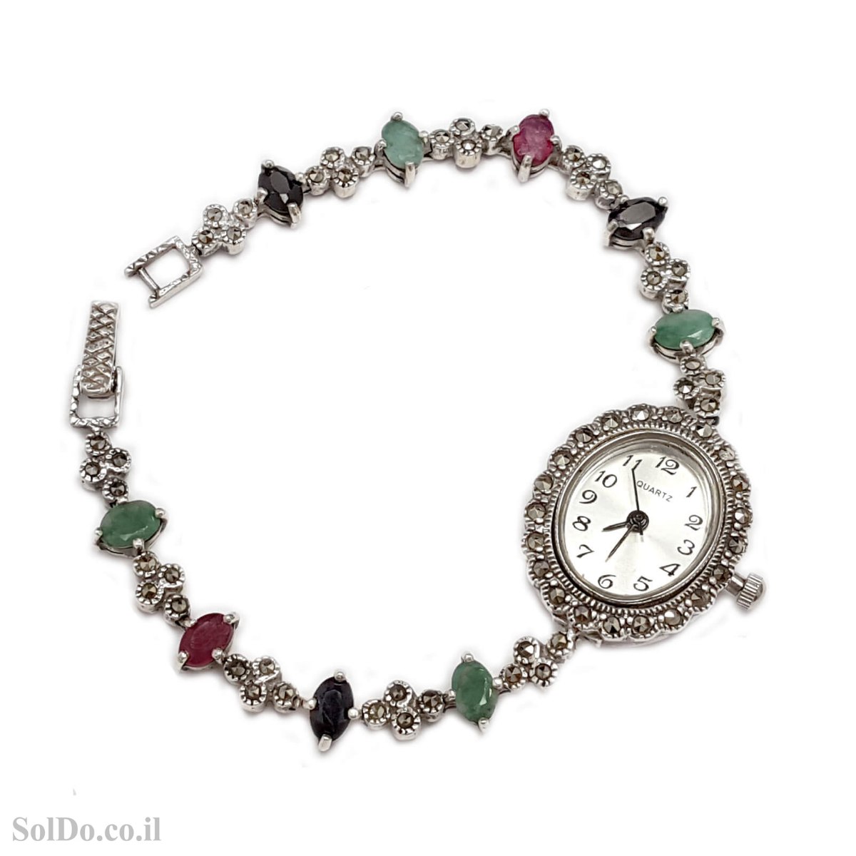 שעון מכסף מעוצב משובץ מרקזטים ואבני אמרלד, רובי וספיר SH3262 | תכשיטי כסף