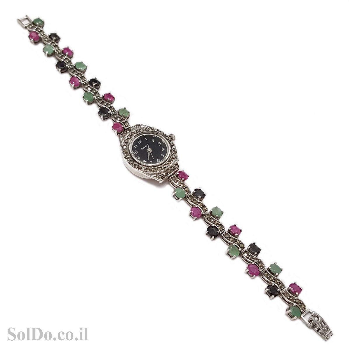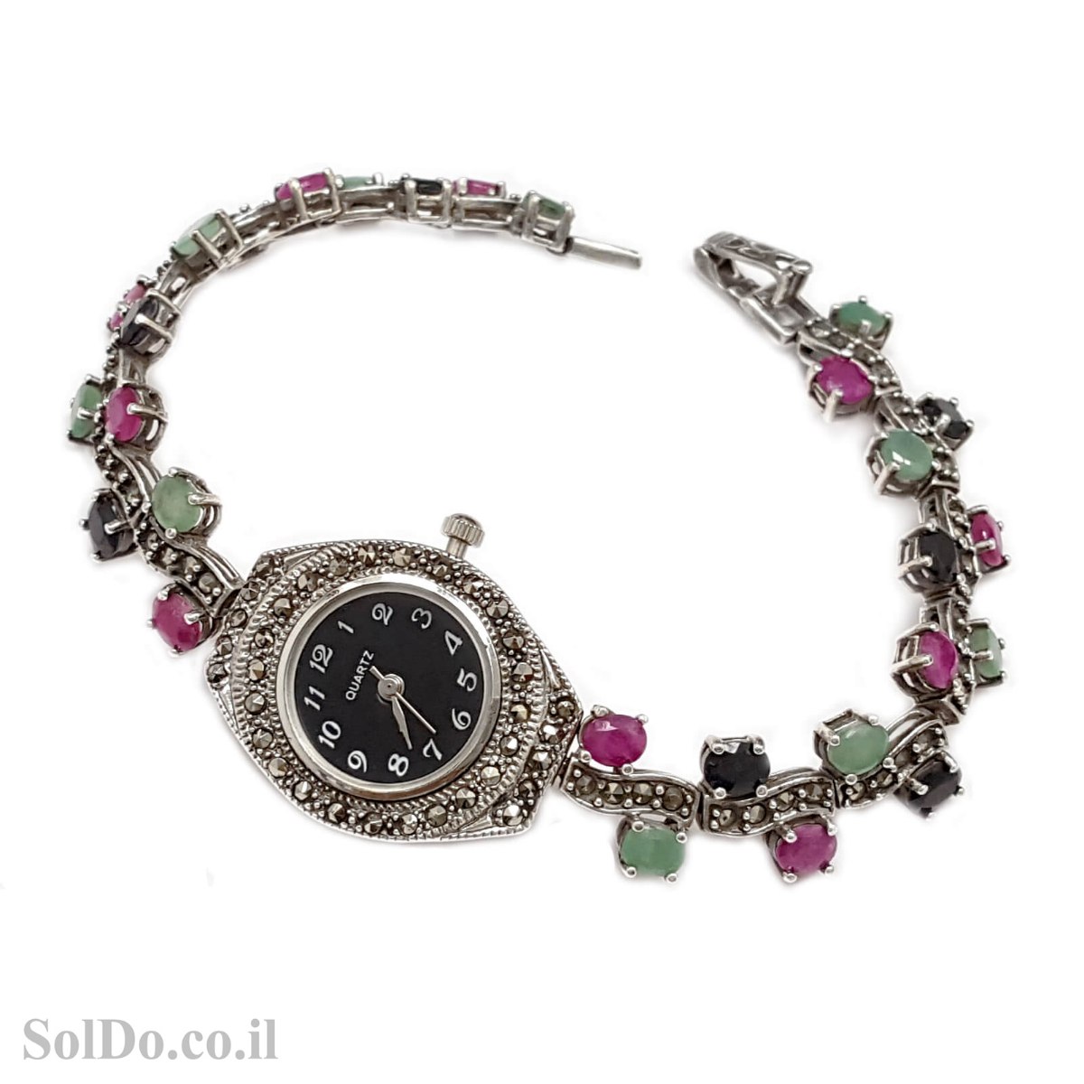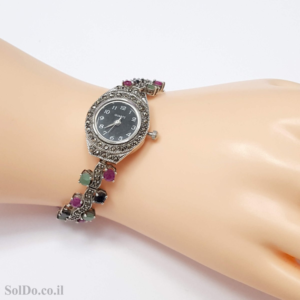 שעון מכסף מעוצב משובץ מרקזטים ואבני אמרלד, רובי וספיר SH3264 | תכשיטי כסף
