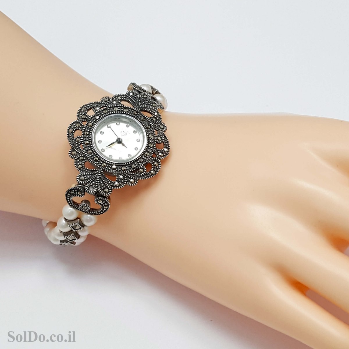 שעון מכסף מעוצב פנינים משובץ מרקזטים SH3270 | תכשיטי כסף