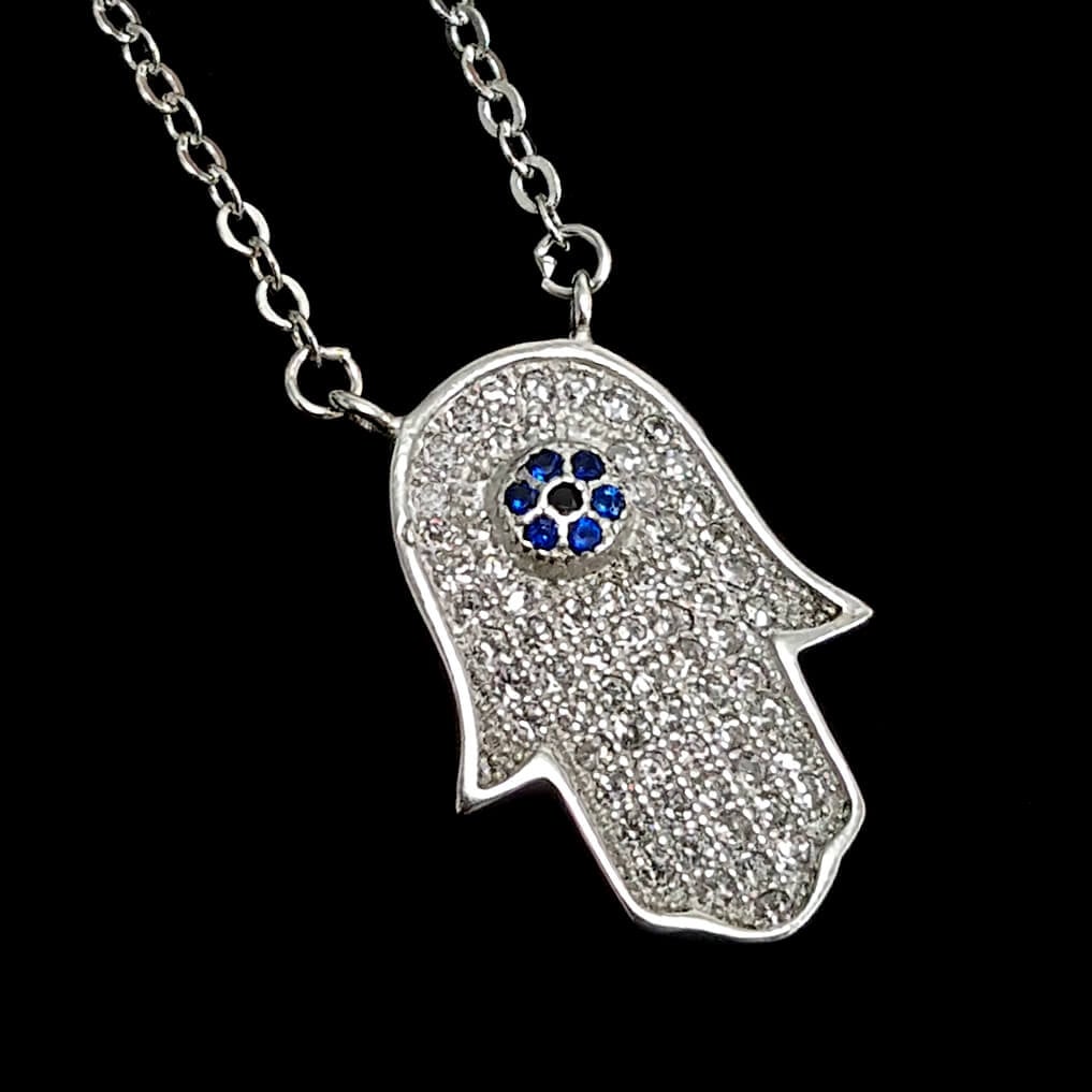 שרשרת כסף חמסה נגד עין רעה משובצת זרקונים (WHITE CZ).