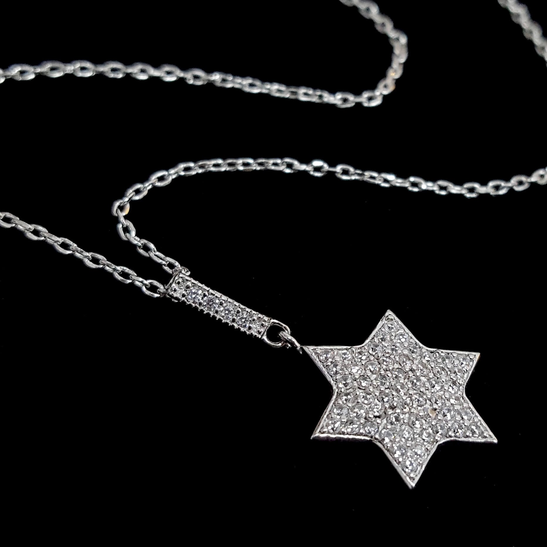 תליון כסף מגן דוד משובץ זרקונים (WHITE CZ).
