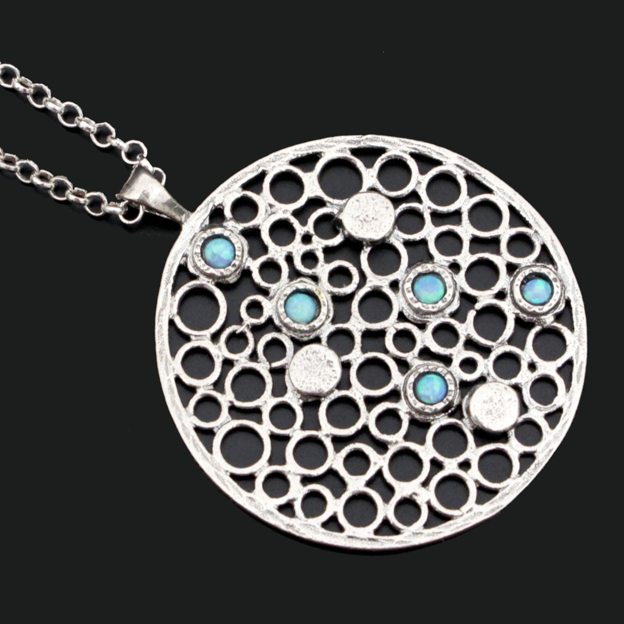 תליון כסף מעוצב ומשובץ אופל כחול.