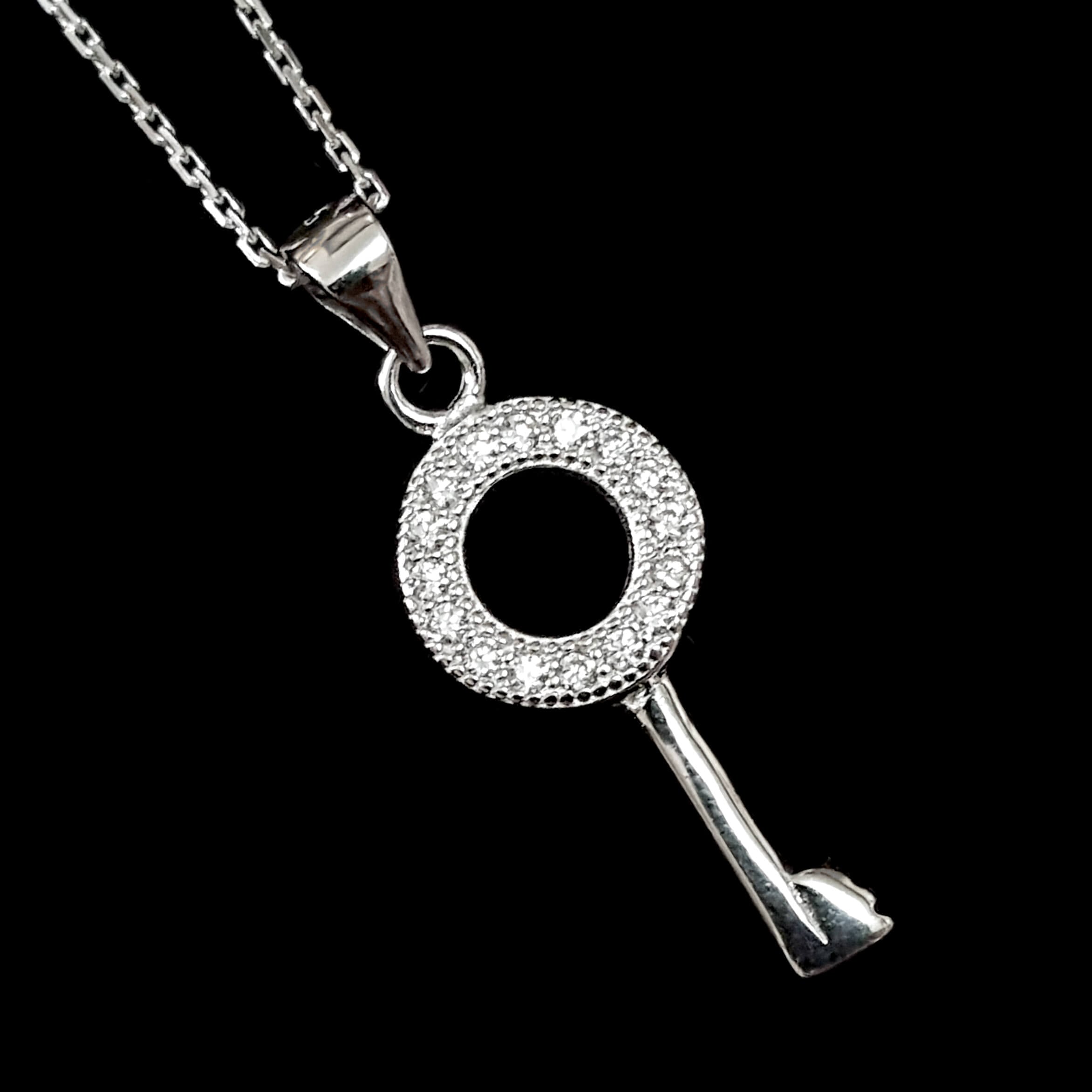 תליון כסף מפתח משובץ זרקונים כולל שרשרת T1720 | תכשיטי כסף 925