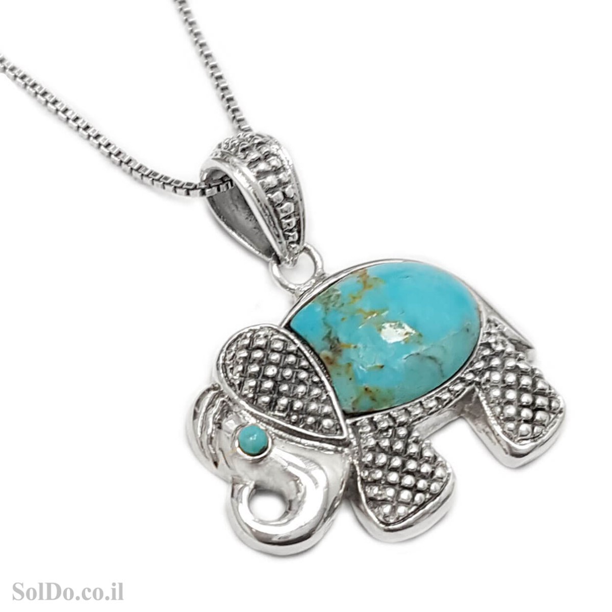 תליון מכסף מעוצב משובץ אבן טורקיז דגם "פיל" T6202 | תכשיטי כסף