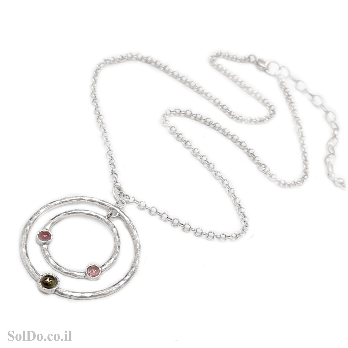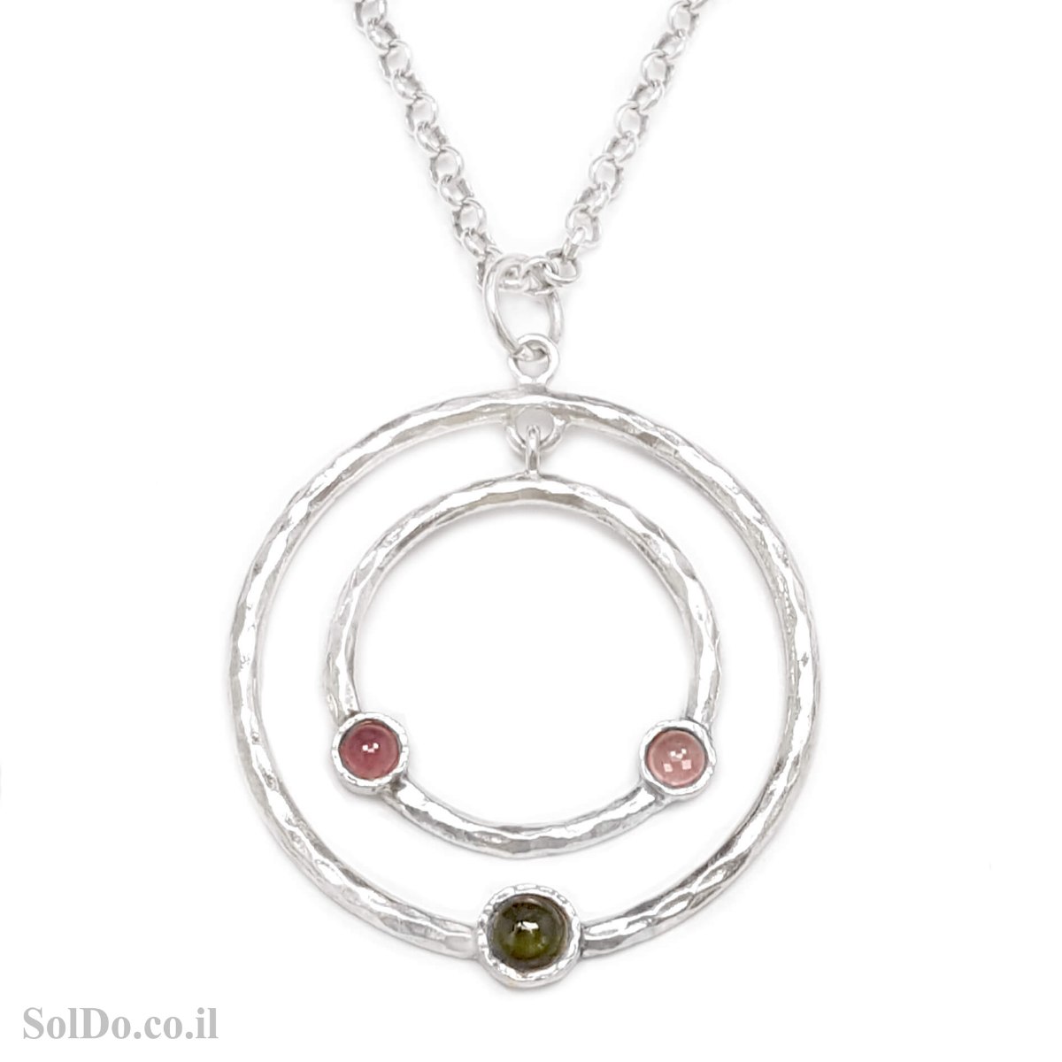תליון מכסף מעוצב משובץ אבני טורמלין T6146 | תכשיטי כסף
