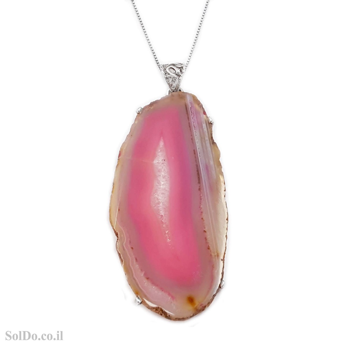 תליון מכסף משובץ אבן אגט צבע ורוד ( BOTSWANA AGATE).