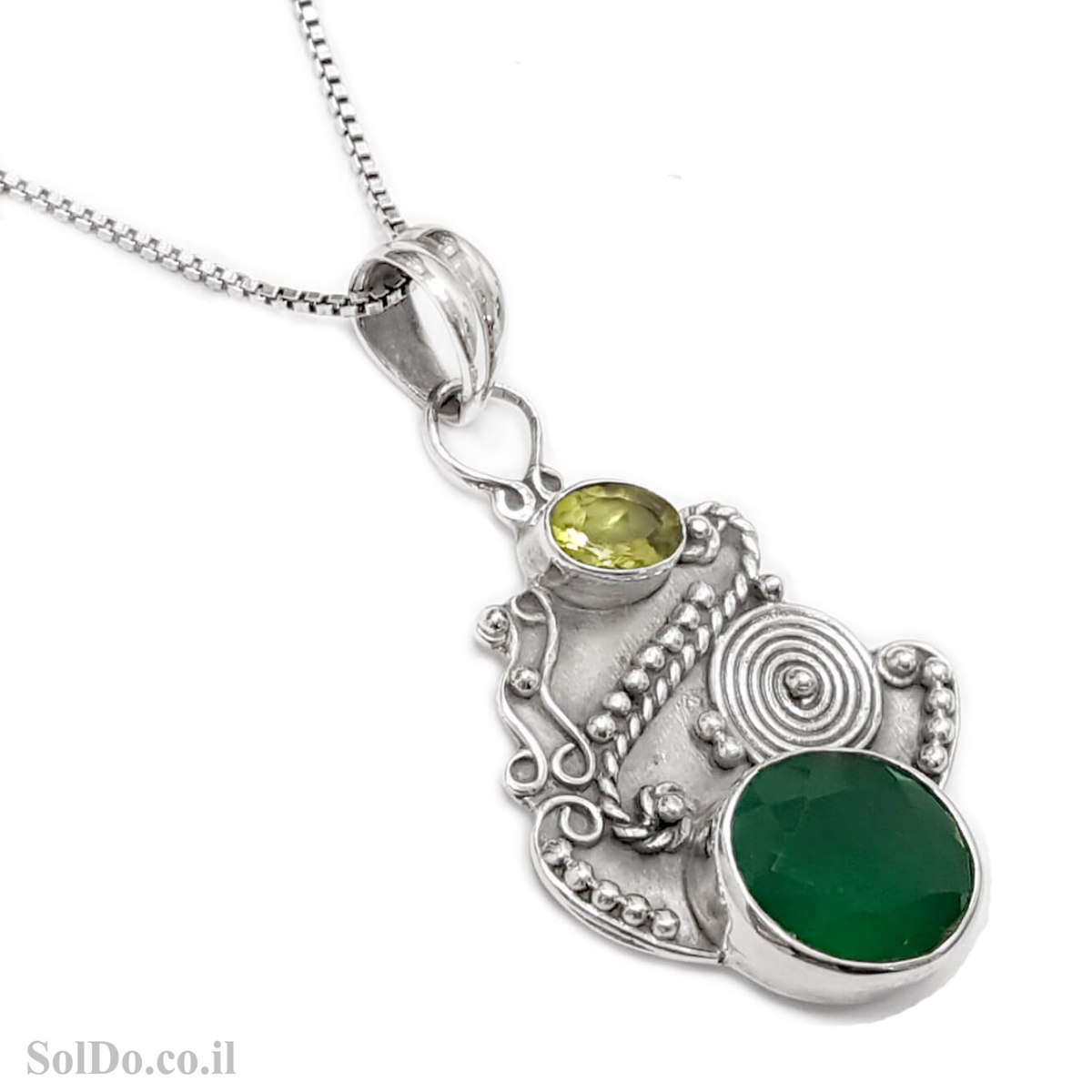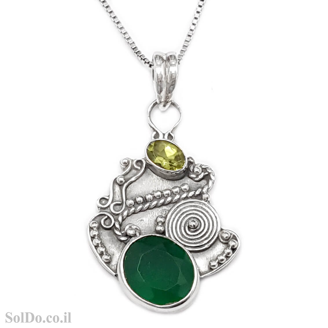 תליון מכסף משובץ אבן אגת צבע ירוק ואבן פרידוט (GREEN AGATE, PERIDOT).