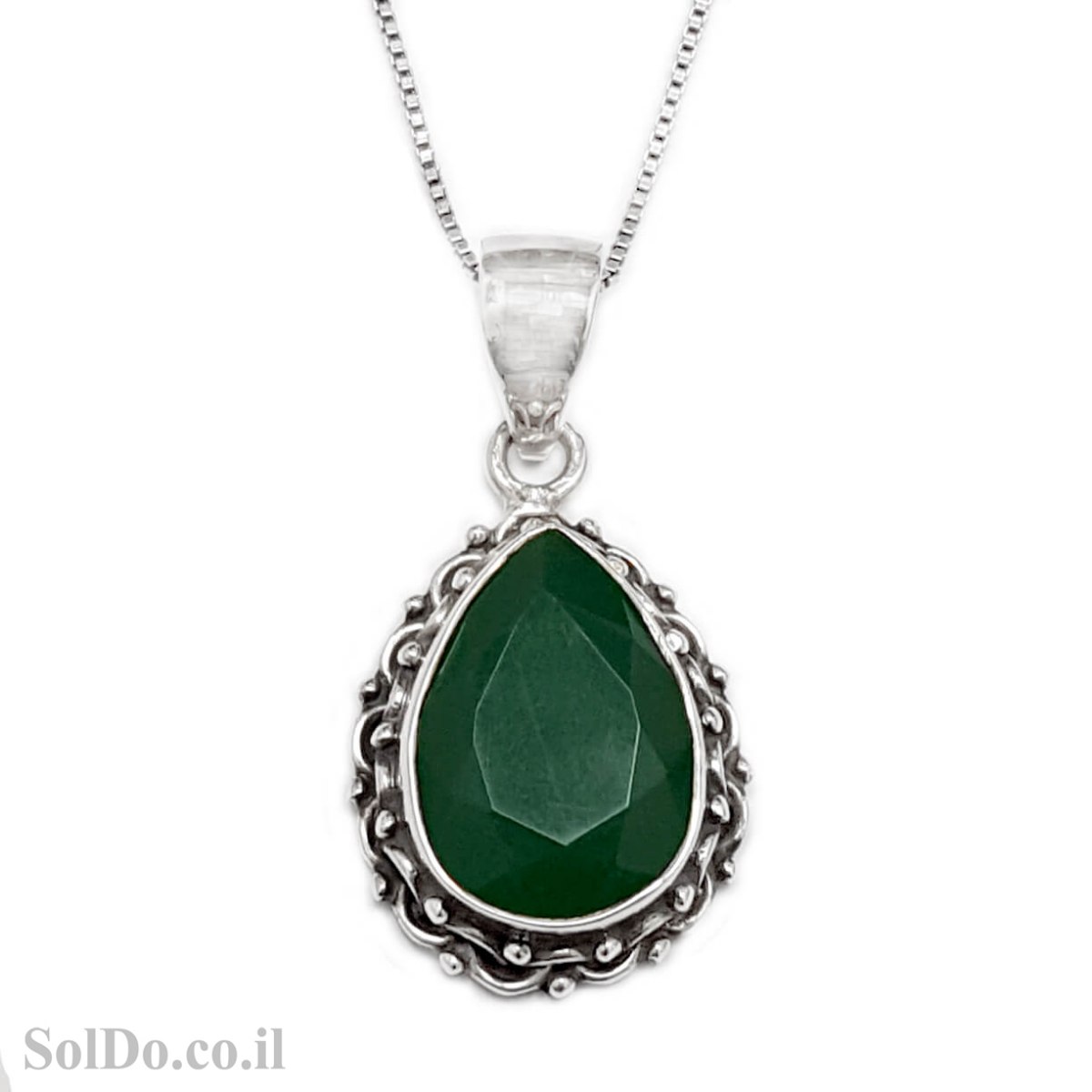 תליון מכסף משובץ אבן אגת צבע ירוק (GREEN AGATE).