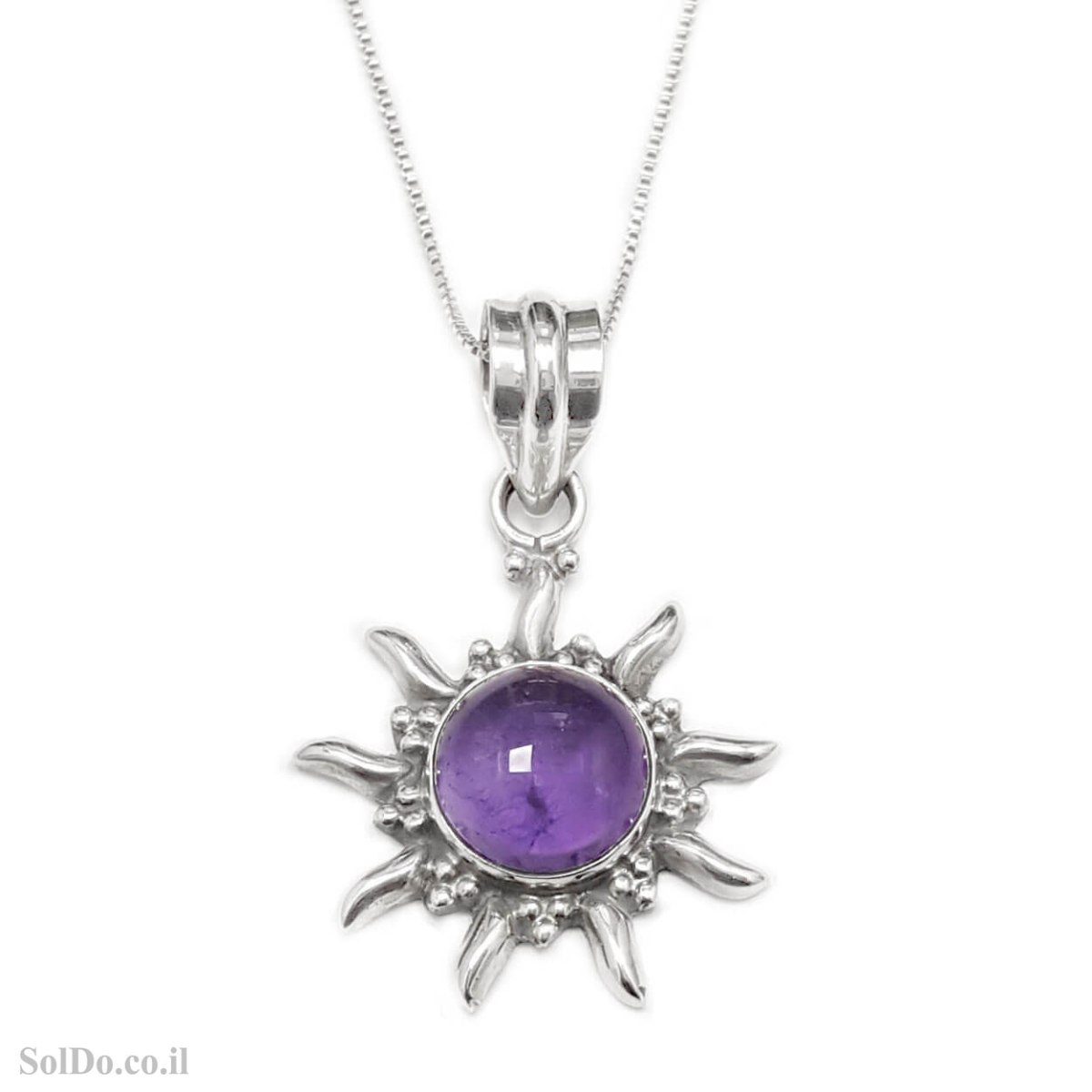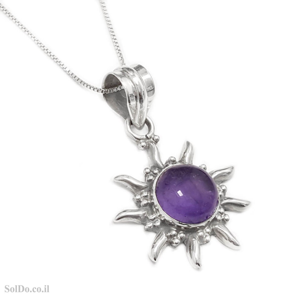תליון מכסף משובץ אבן אמטיסט T9023 | תכשיטי כסף