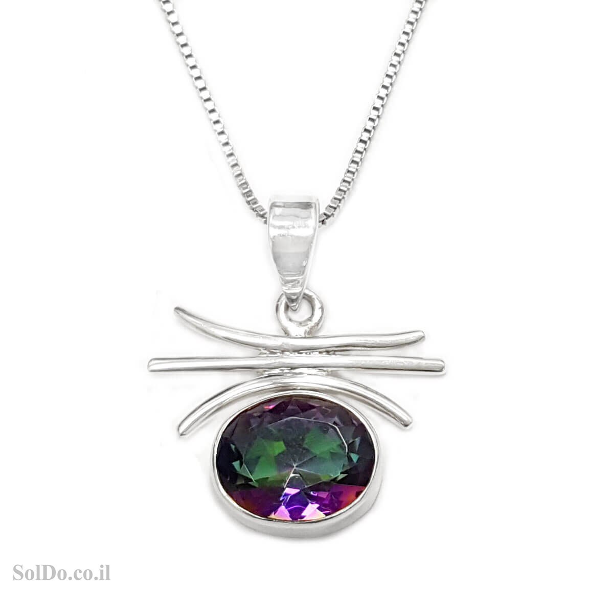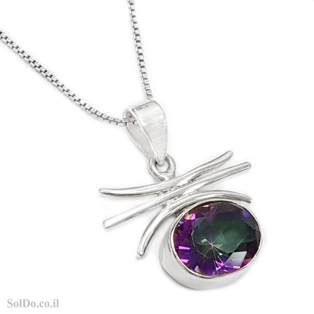 תליון מכסף משובץ מיסטיק טופז (RAINBOW TOPAZ LAB).