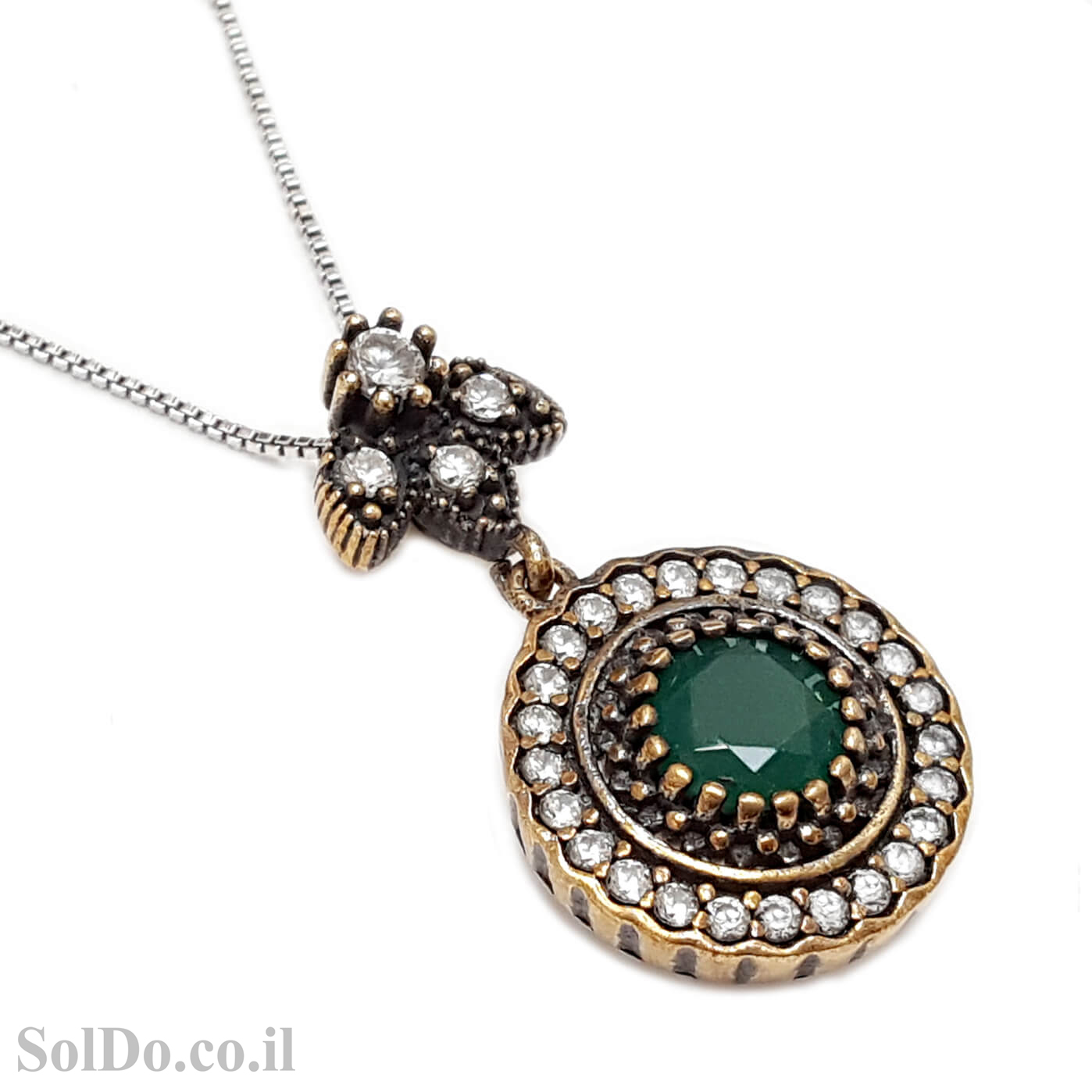 תליון מכסף סגנון ויקטוריאני משובץ אבני זרקון צבעוניות וציפוי נחושת T6122 | תכשיטי כסף