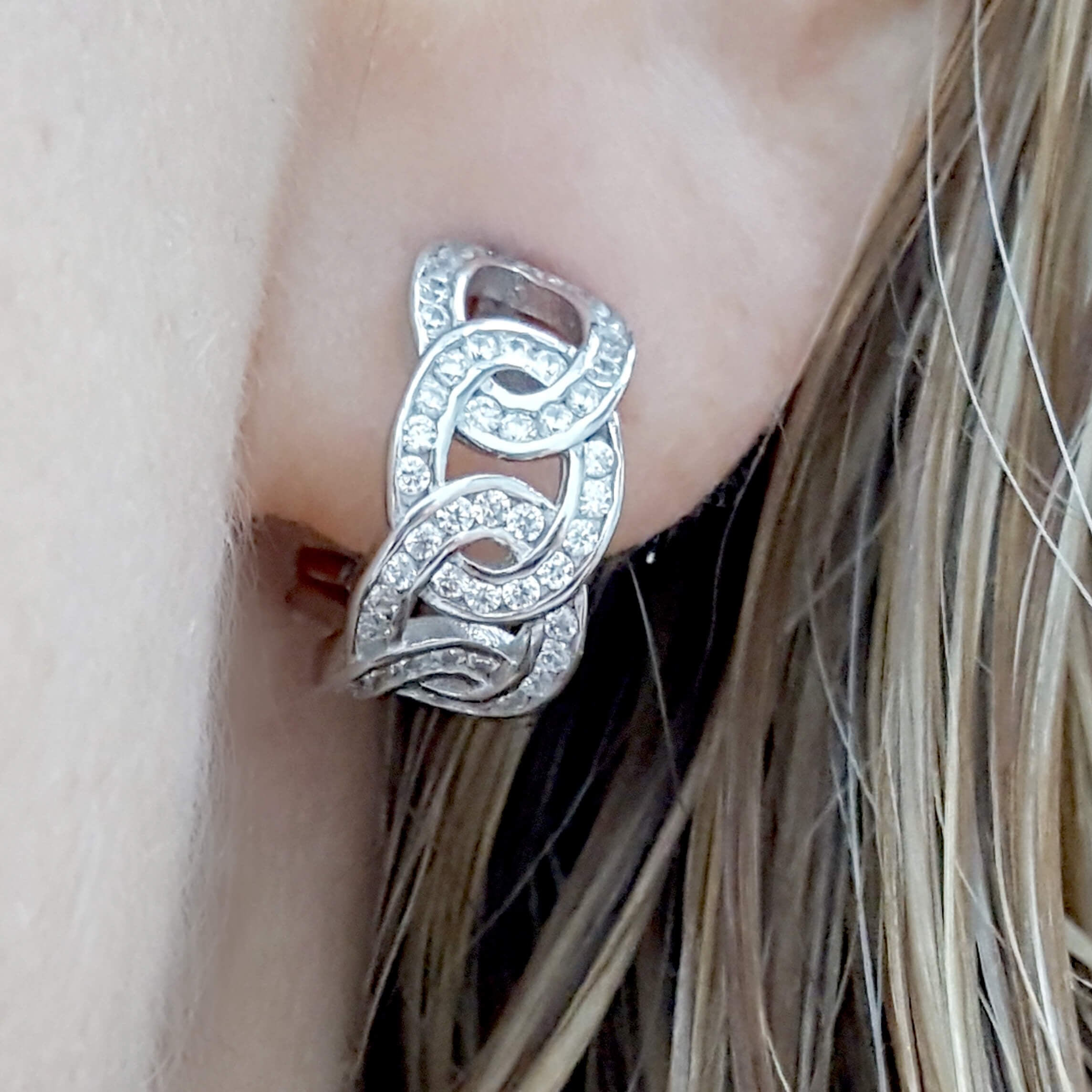 עגילי כסף משובצים אבני זרקון A8498 | תכשיטי כסף 925